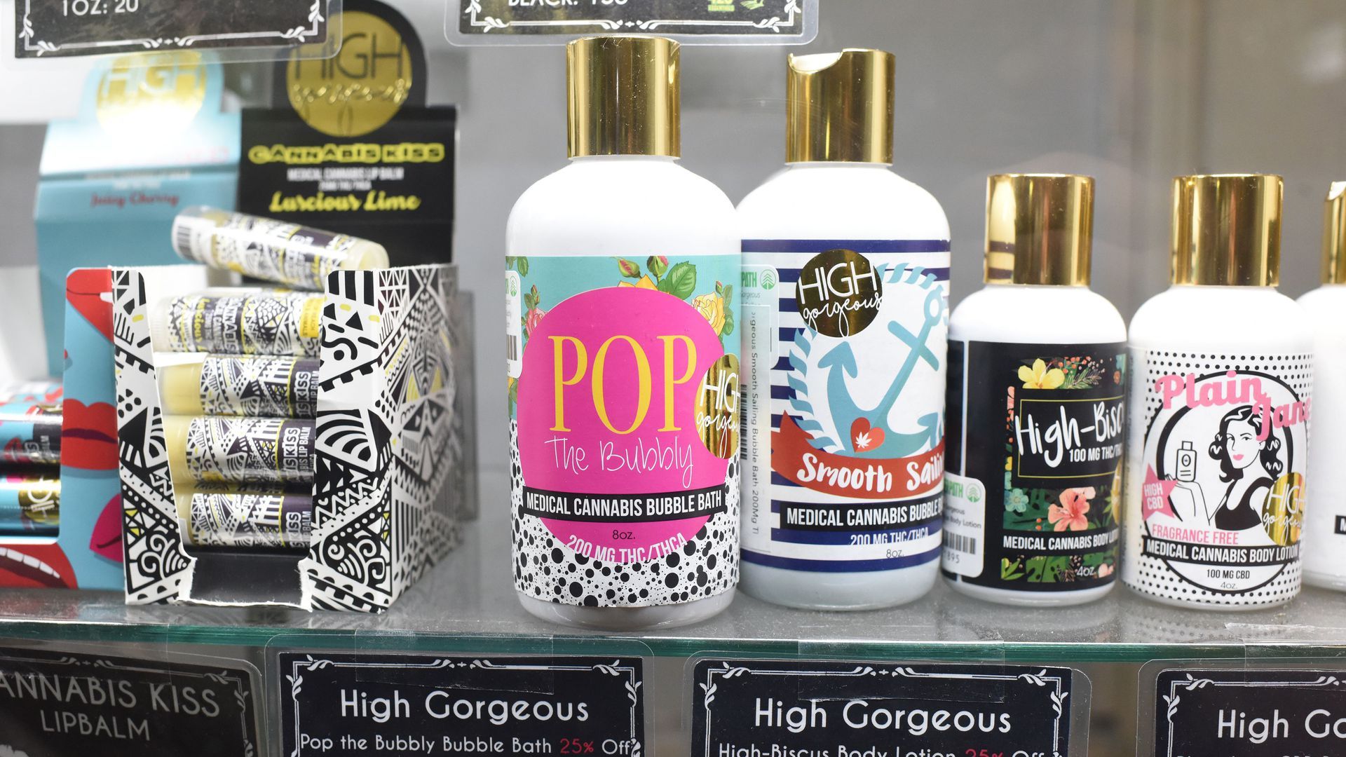Weed bubble bath and body lotion for sale in Los Angeles. Photo: Robyn Beck/AFP/Getty