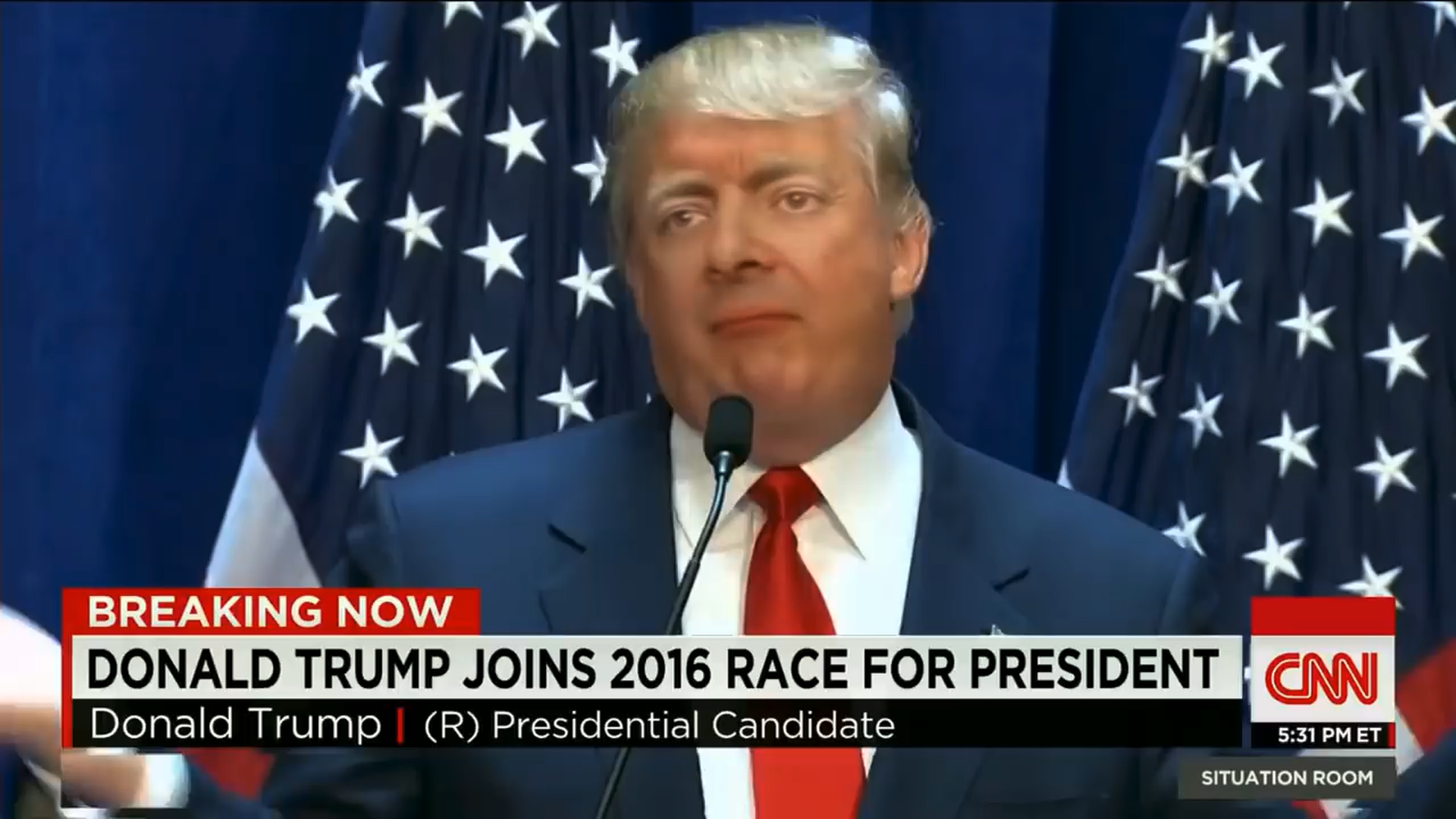 Kaveh writes: Here's a video of President Trump speaking through the face of British comedian Rowan Atkinson (of Mr. Bean fame). It's deeply odd and impossible to look away from.