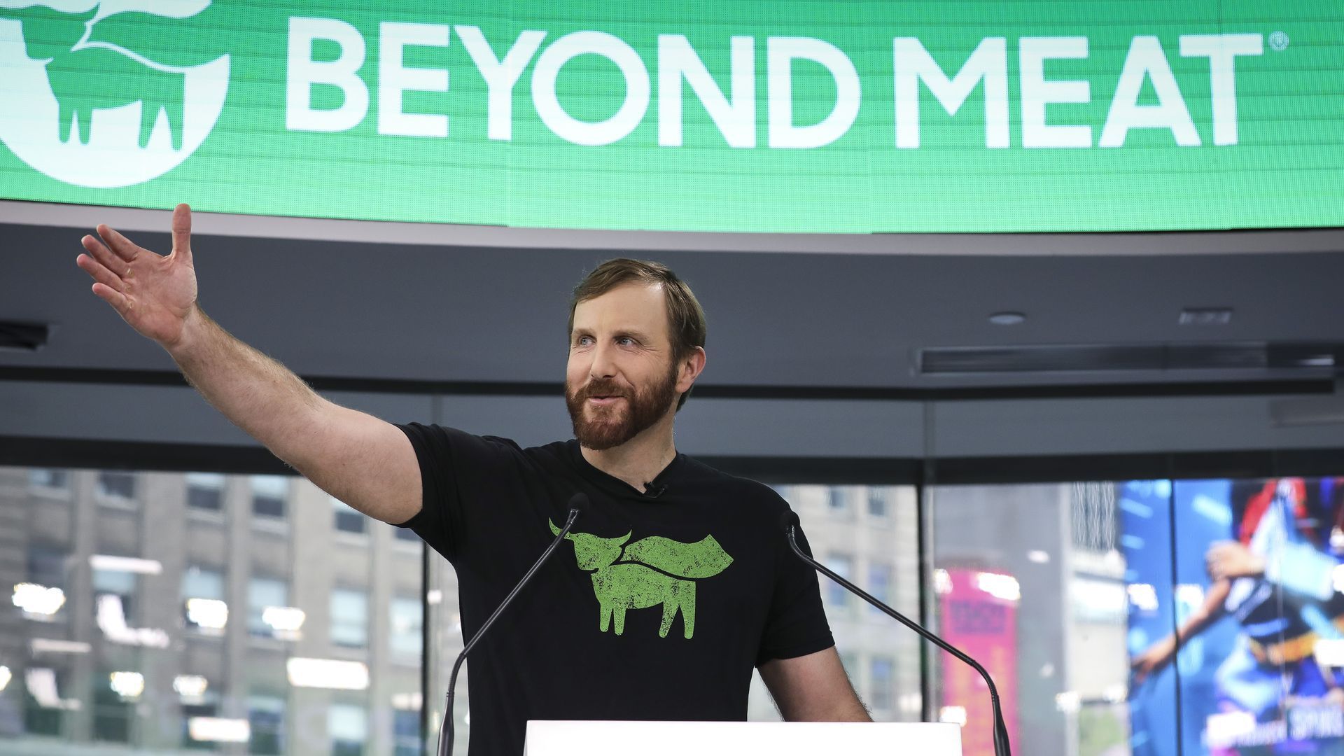 Beyond Meat CEO Ethan Brown at Nasdaq. It went public in May. Photo: Drew Angerer/Getty