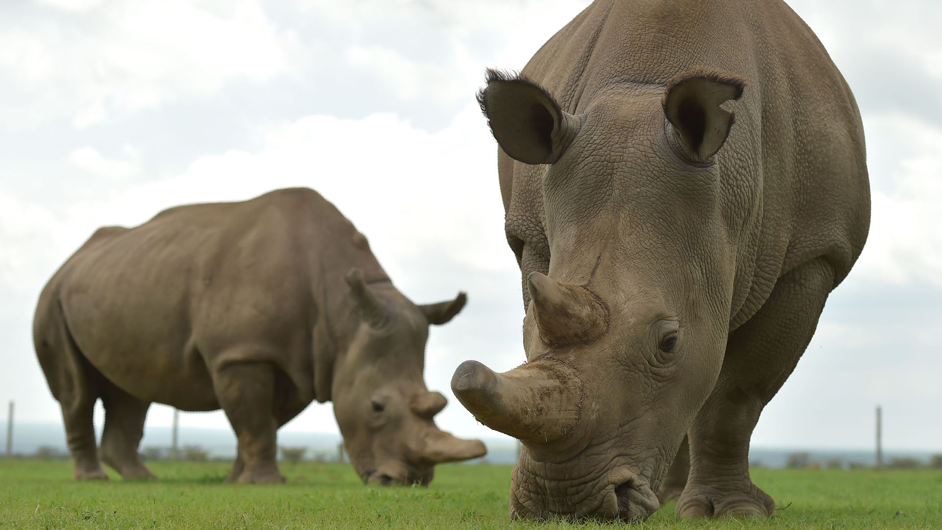 Najin (L) and Fatu, the last known northern white rhinos, both female. Photo: Tony Karumba/AFP/Getty Images