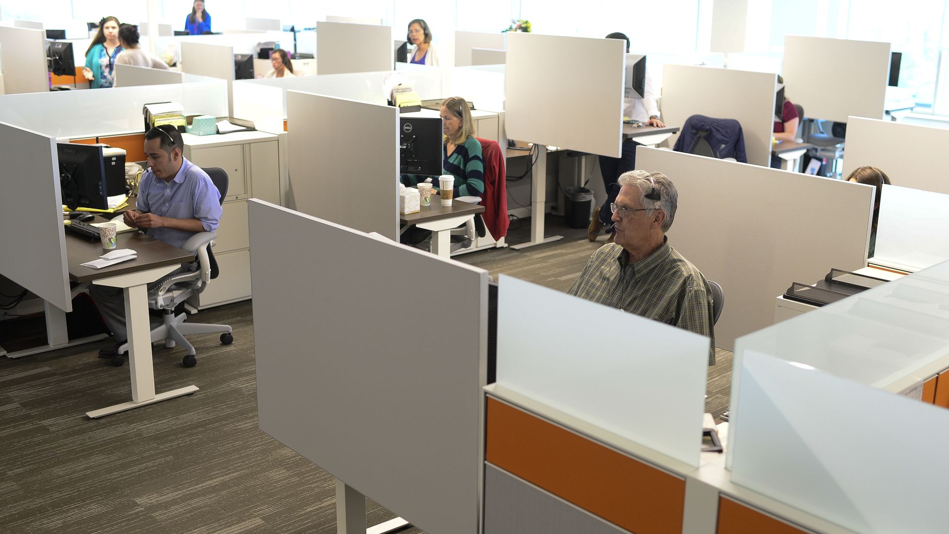 Call center workers are targeted for automation. Here, in Lakewood, CO. Photo: Michael Reaves/Denver Post/Getty Images