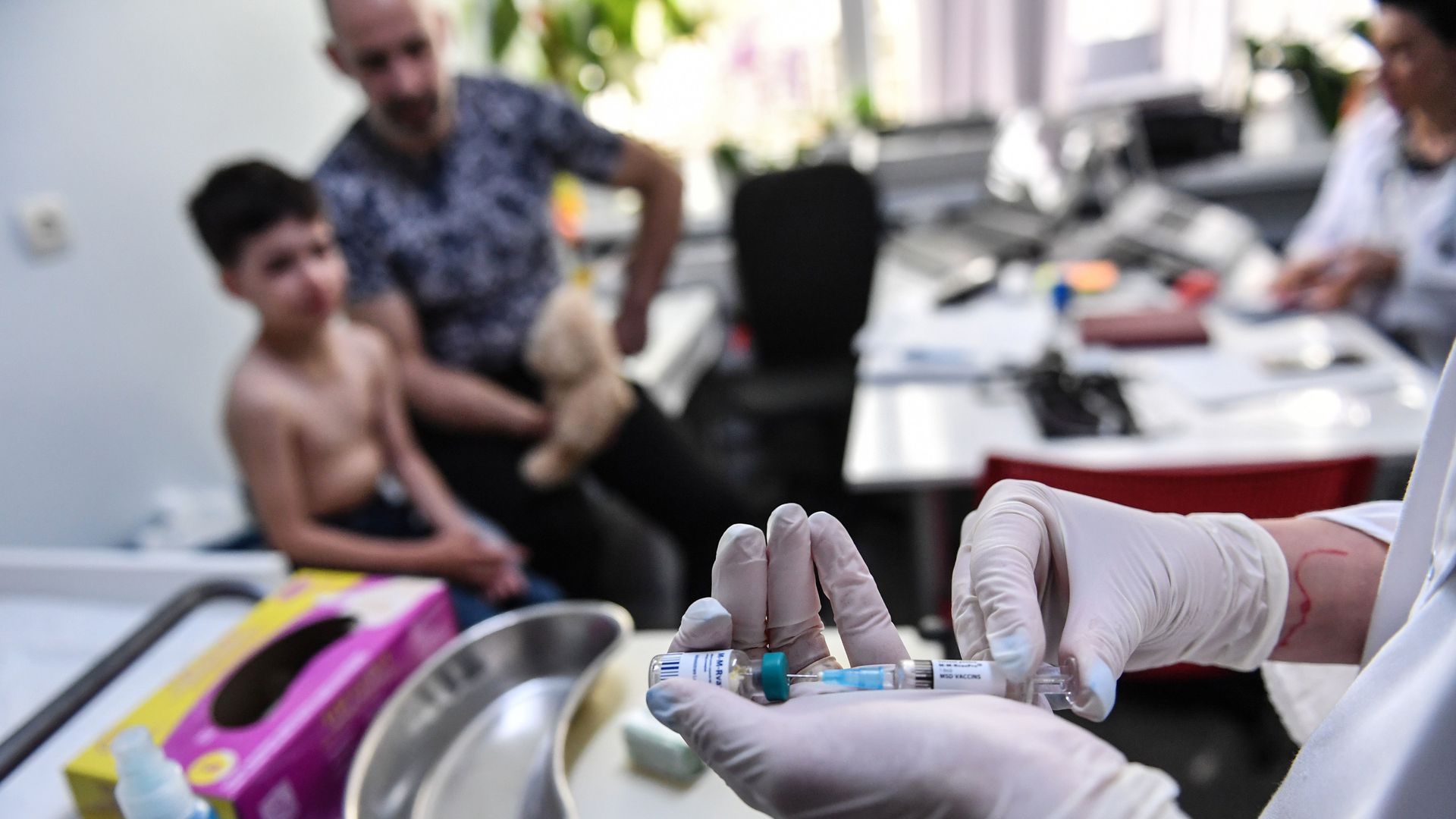 Preparing a measles innoculation. Photo: Daniel Mihailescu/AFP/Getty