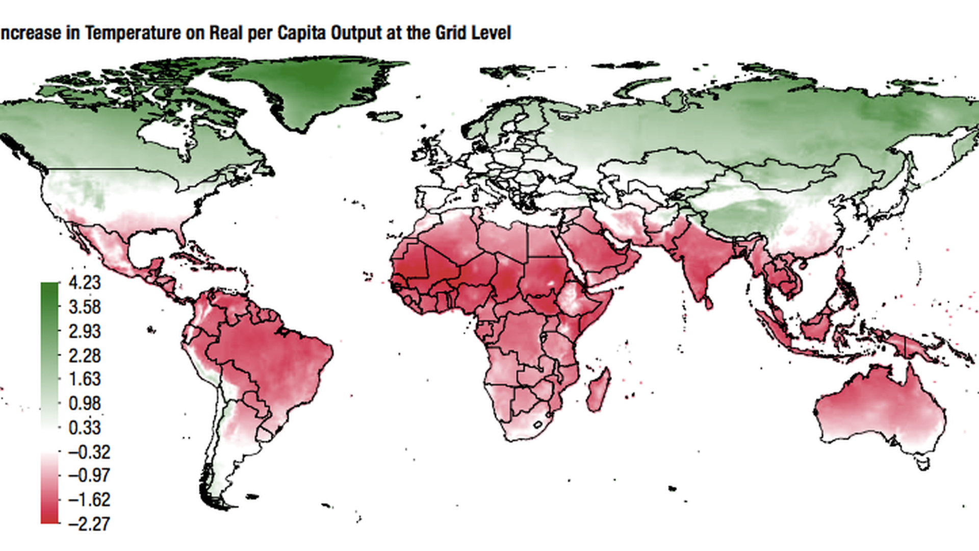 - If global emissions were left unchecked, "the resulting projected increase in temperature would erase close to one-tenth of the per capita output of the median low-income country by the end of the 21st century."