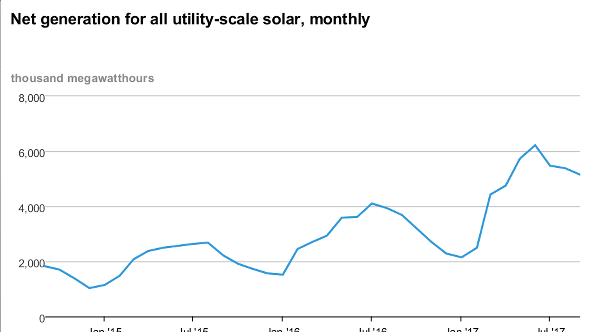 The chart above is one example of the recent growth (it looks at just utility-scale solar) that the renewables advocates say is at risk going forward in decisions that loom in Congress and the White House.