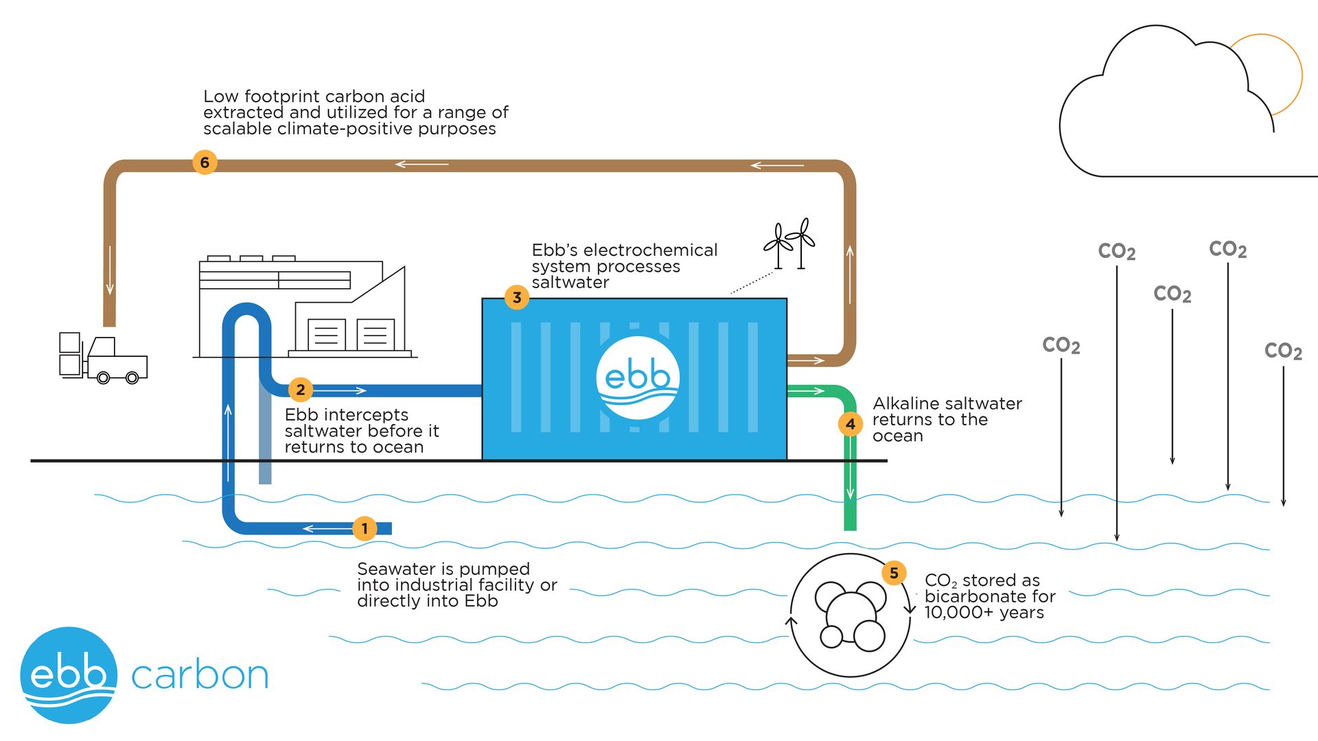 - "Much like alkalinity is extracted from rocks, it can also be extracted from seawater, in a fraction of the time, using electrochemistry," an Ebb Carbon explainer notes.
