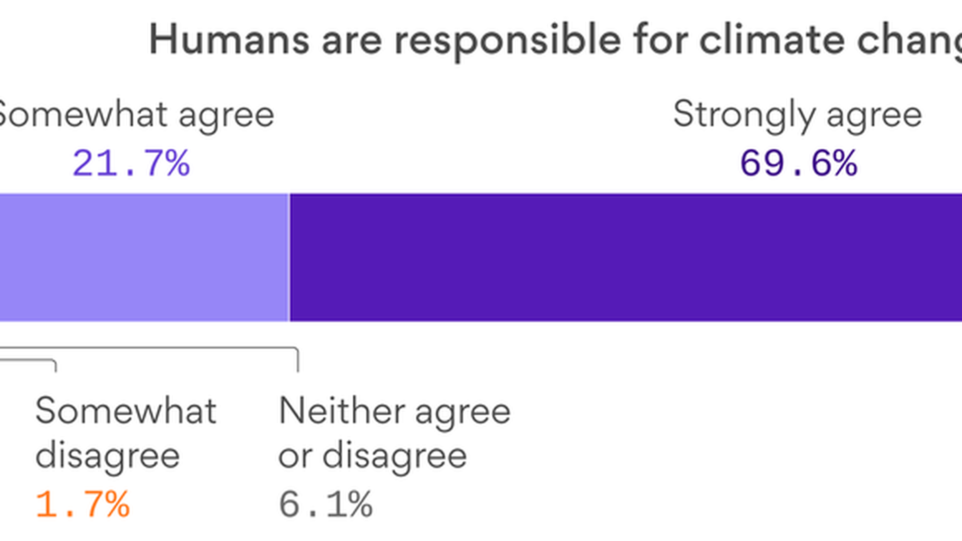 Roughly 70% strongly agree that science has shown that humans are responsible for climate change (see chart above). Almost 49% view climate change and "destruction of nature" as the most serious issue confronting the world, the third year in a row that climate has topped the list, according to WEF.