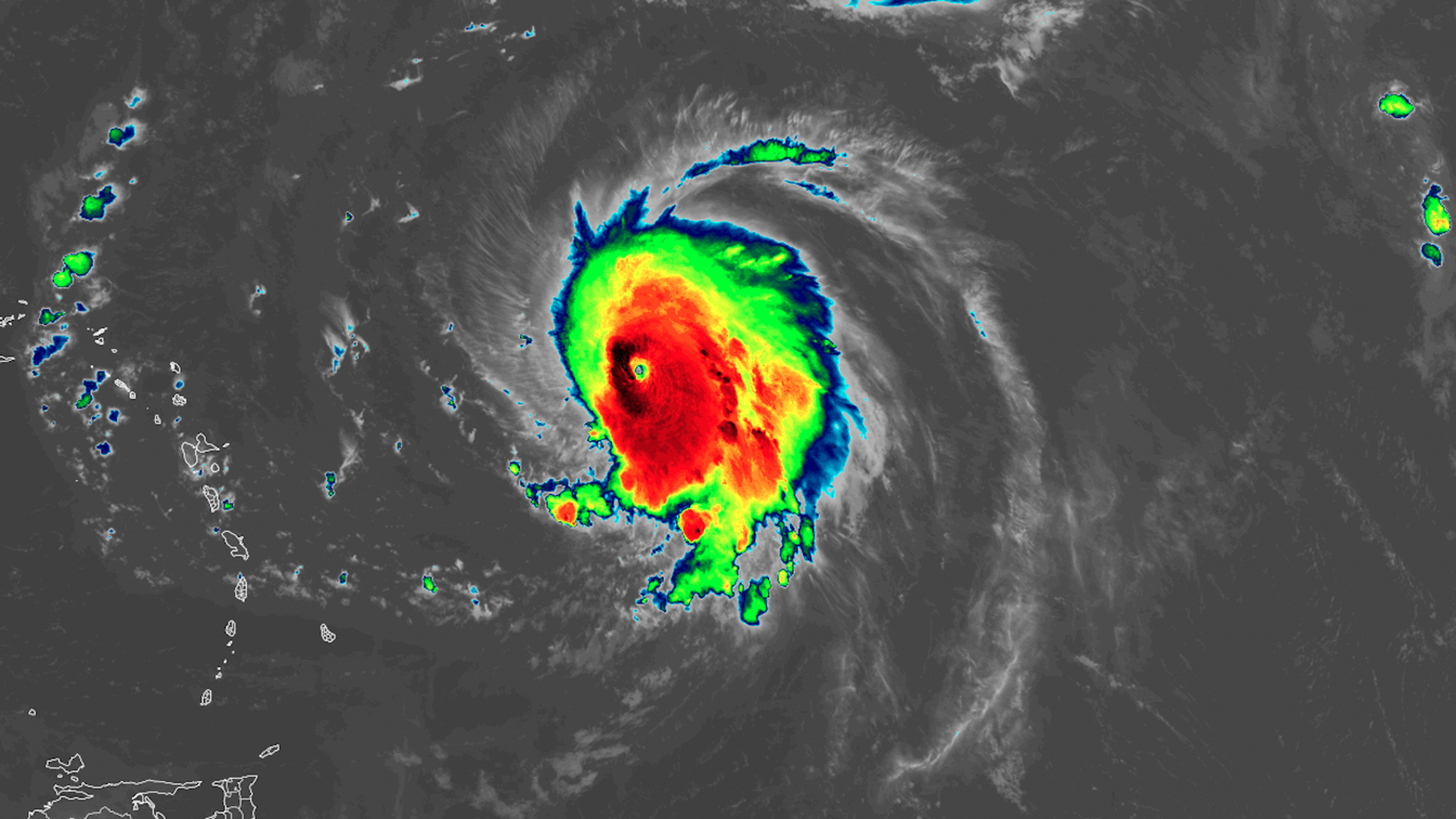 Satellite image of Hurricane Lee Friday morning east of the Lesser Antilles. Image: CIRA/RAMMB