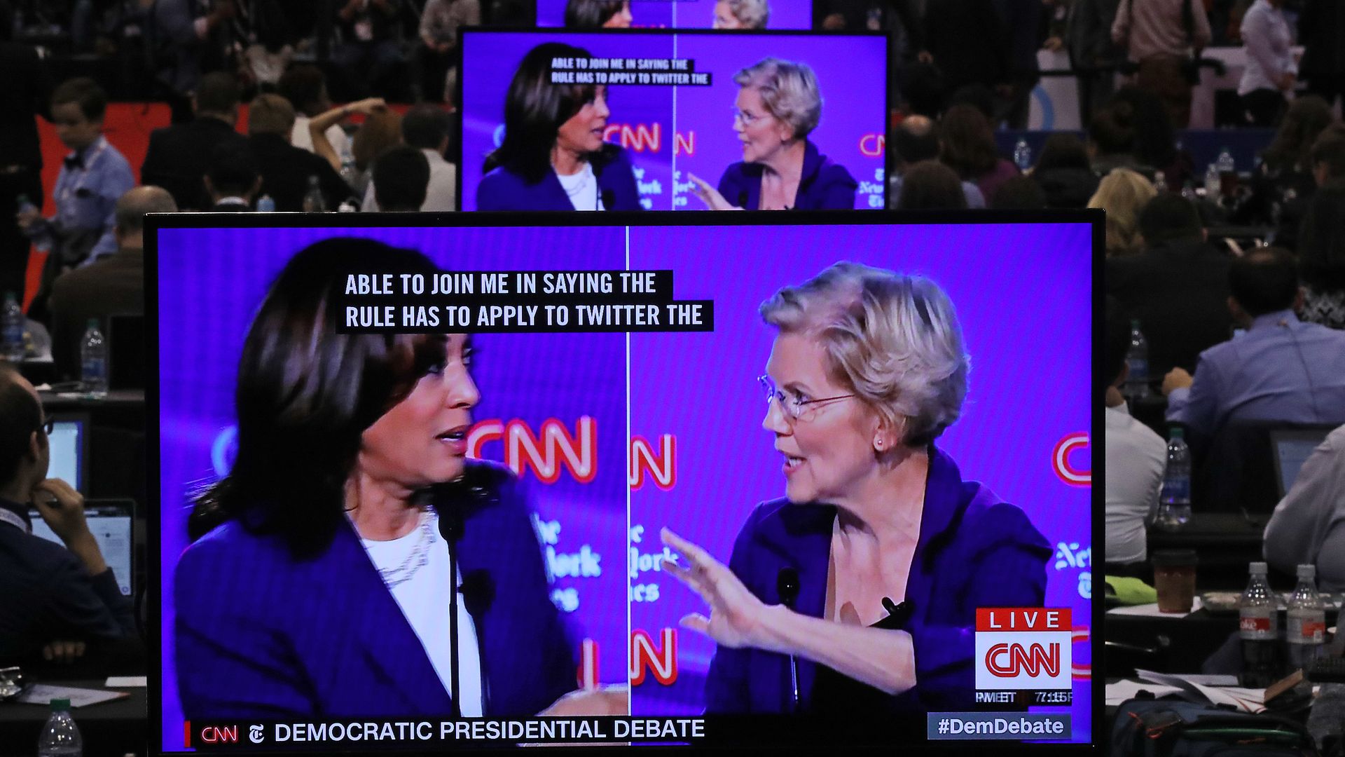 - Harris challenged Warren to endorse her demand that Twitter boot Trump, which she described as "a matter of corporate accountability."