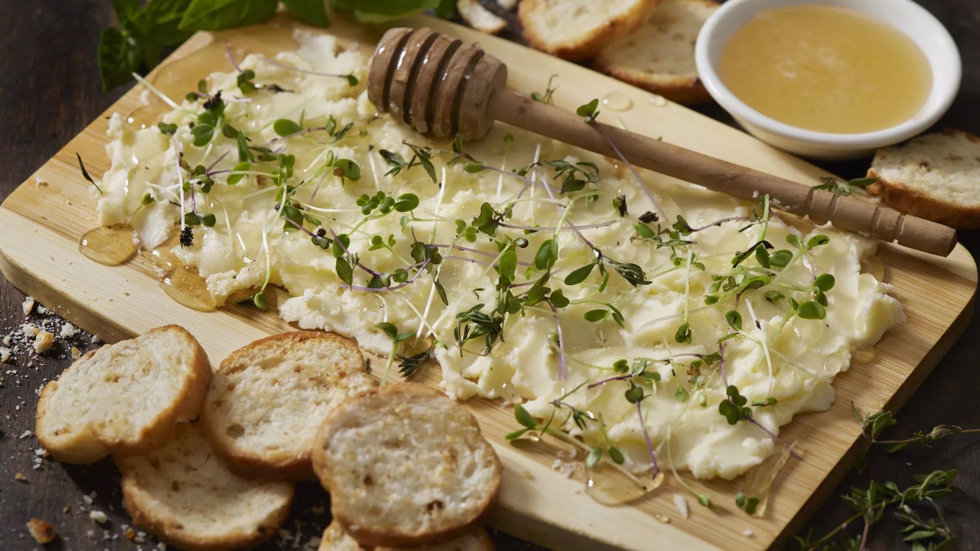 Photo of a butter charcuterie board with organic honey. Photo: Lauri Patterson/Getty Images