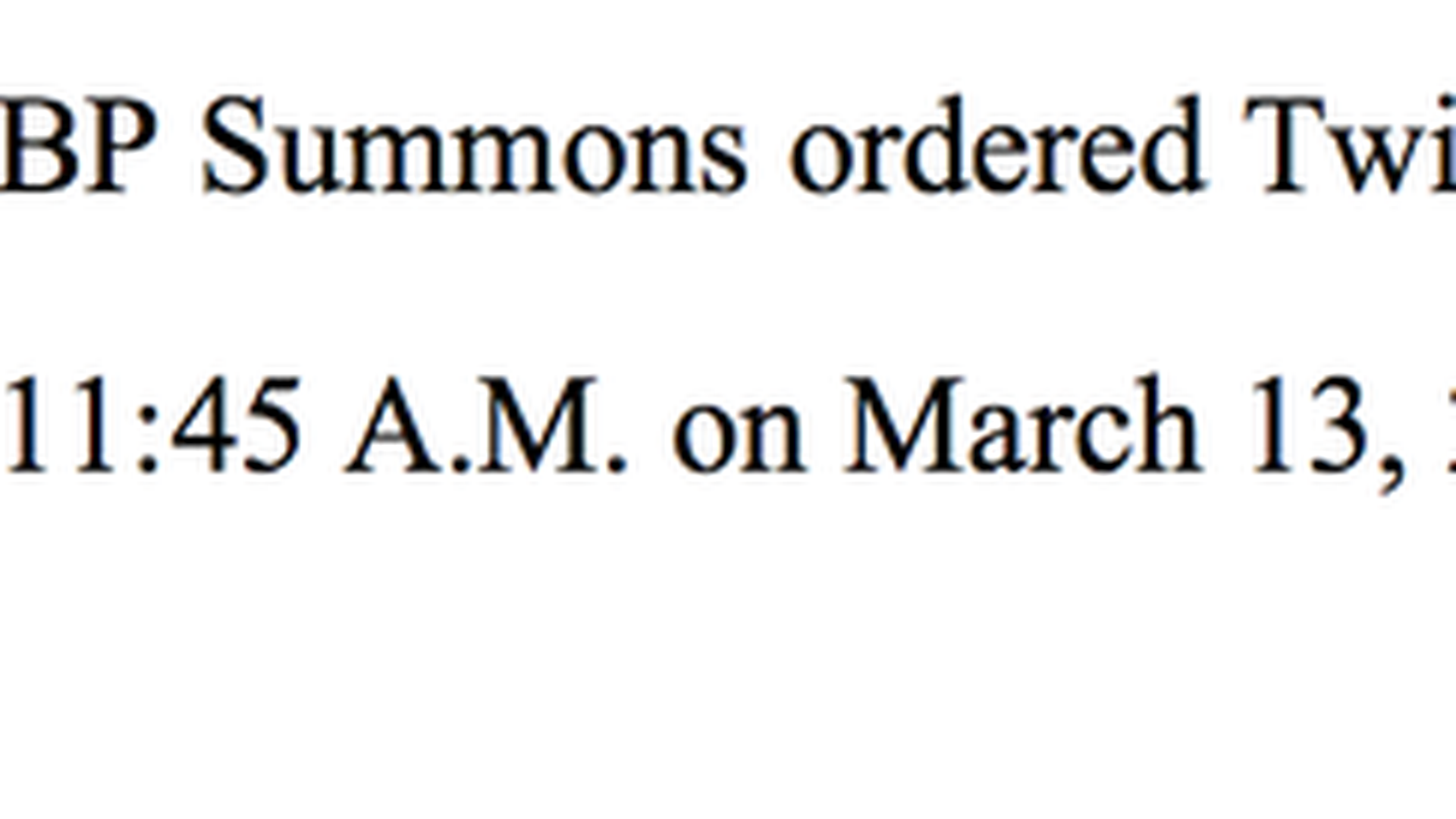 Some would argue that the Trump Administration's demand that Twitter turn over information on a political enemy was unreasonable as a whole. But I think we can all agree that one part definitely was. As part of its effort to compel Twitter to unmask the person behind the alt_USCIS account, Twitter says the government ordered it to provide the information by March 13, the day before the government even faxed over its order. (Also, it faxed the order, so I'm a bit surprised anyone even noticed it.)
