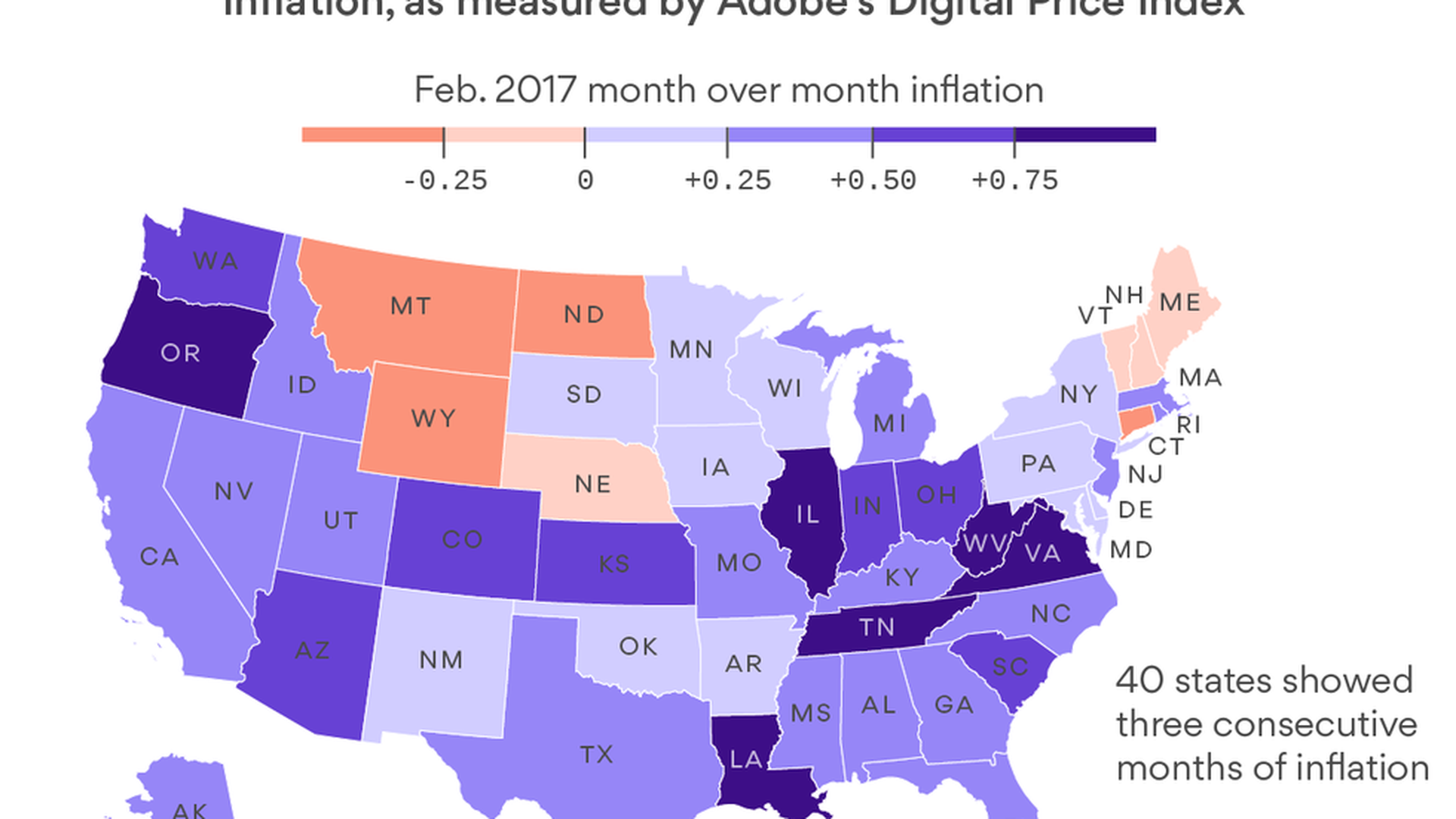 The amount of data also means Adobe can break down the information on a state-by-state basis, whereas the CPI doesn't get more granular than regional. And it can release the data in a fraction of the time it takes the Bureau of Labor Statistics to compile the CPI.