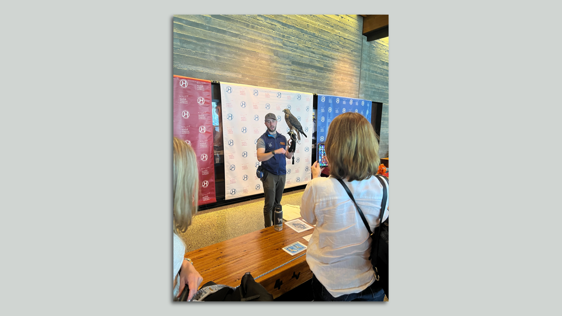 There was a live hawk on display in the Jackson Hole Airport when Neil arrived yesterday, hosted by the Teton Raptor Center (photo below!). There was another speaking to a ballroom full of economists and central bankers this morning.