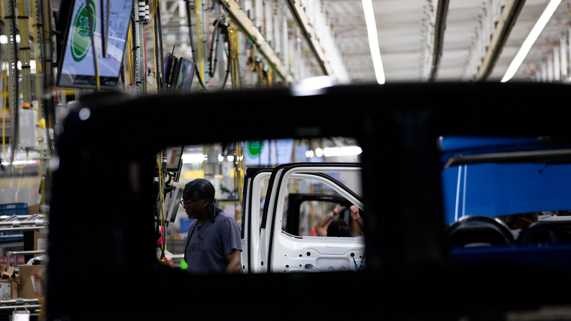 A worker on the production line at the Ford Rouge Electric Vehicle Center. Photo: Emily Elconin/Bloomberg via Getty Images