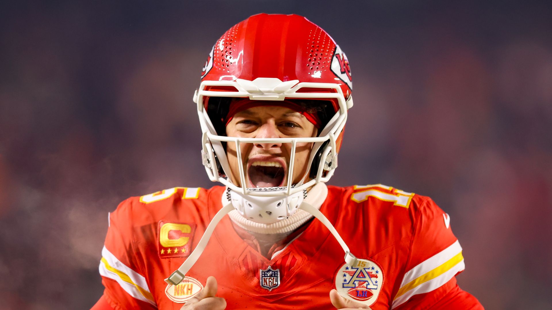 Kansas City Chiefs quarterback Patrick Mahomes yells to fire up the crowd on Saturday at GEHA Field at Arrowhead Stadium in Kansas City, Mo. Photo: Scott Winters/Icon Sportswire via Getty Images