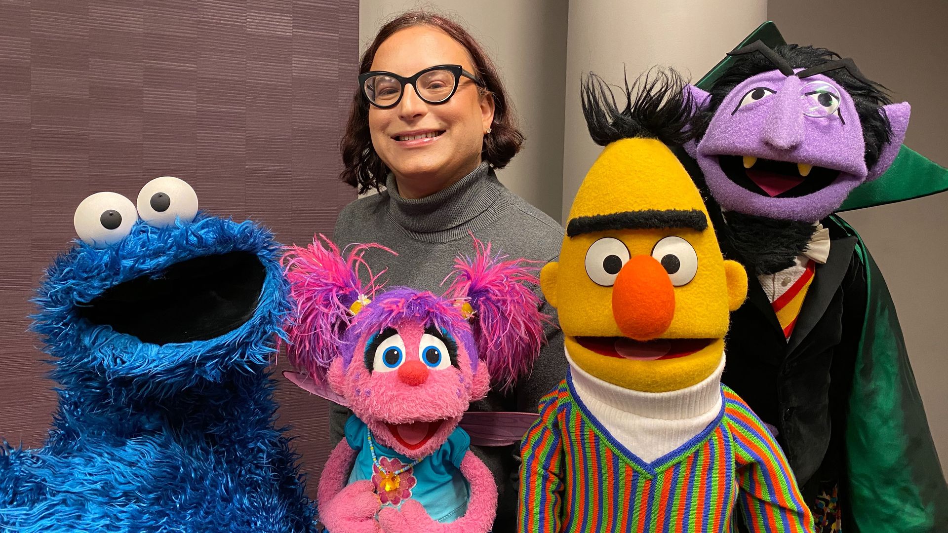 Photo: Axios (Axios' Ina Fried with the case of Sesame Street in LA)