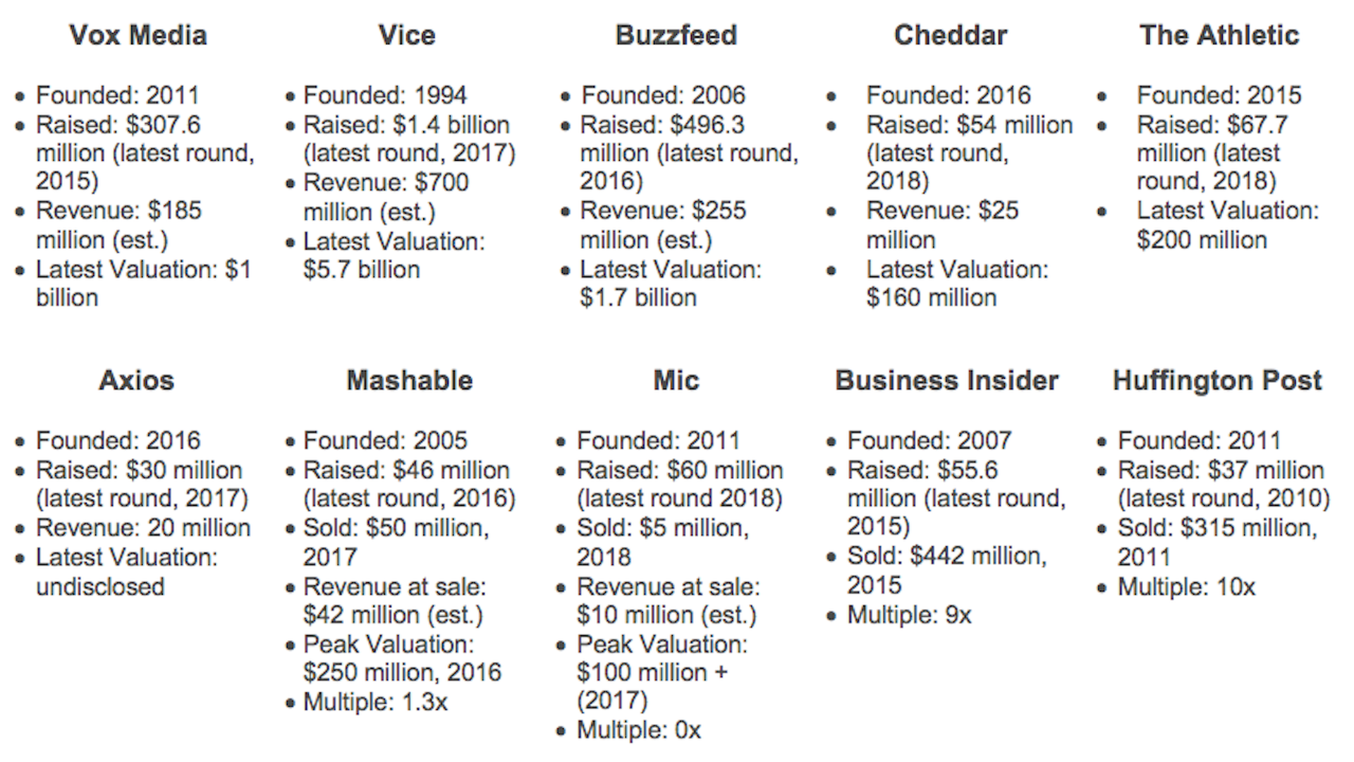 Valuations: Digital media companies tend to sell for anywhere between 2.5x and 9x revenues from the previous year, or a little higher in terms of EBITDA.