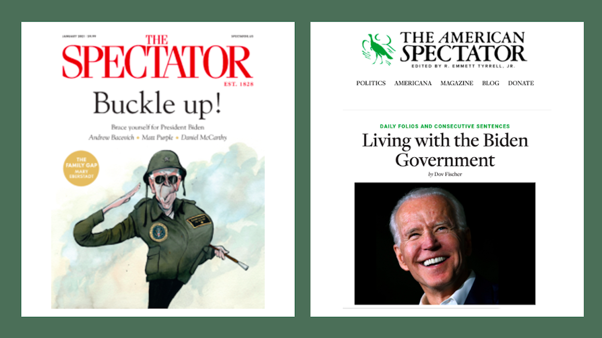 Be smart: The two outlets don't have similar content, just similar names. The Spectator is less ideological, more global and covers more arts and culture. The American Spectator has long focused on political analysis in America with a conservative lens.