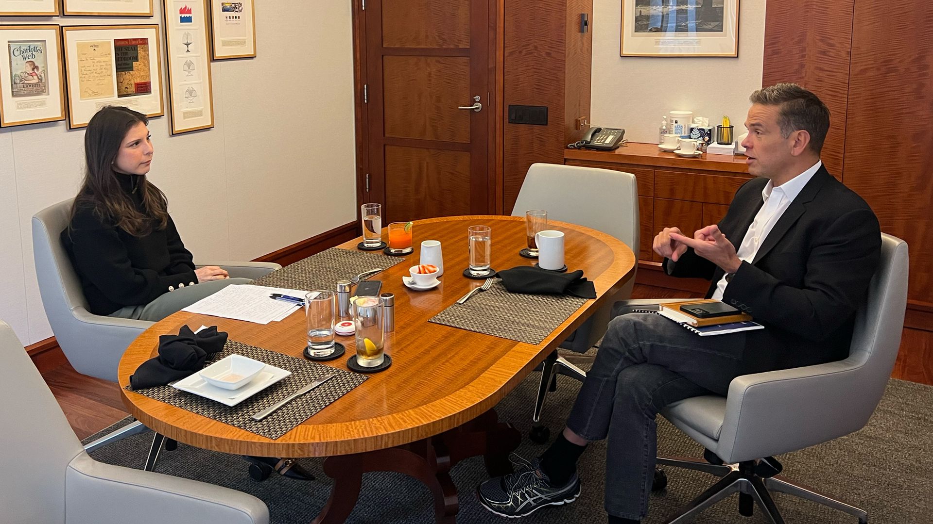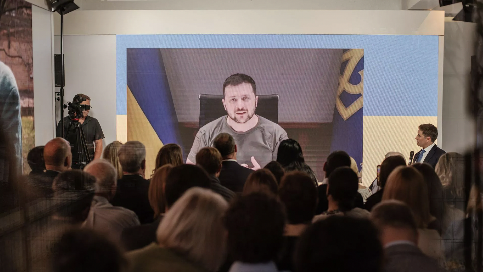 Jonathan Swan's interview with Zelensky at Davos. Photo: Ukraine House Davos