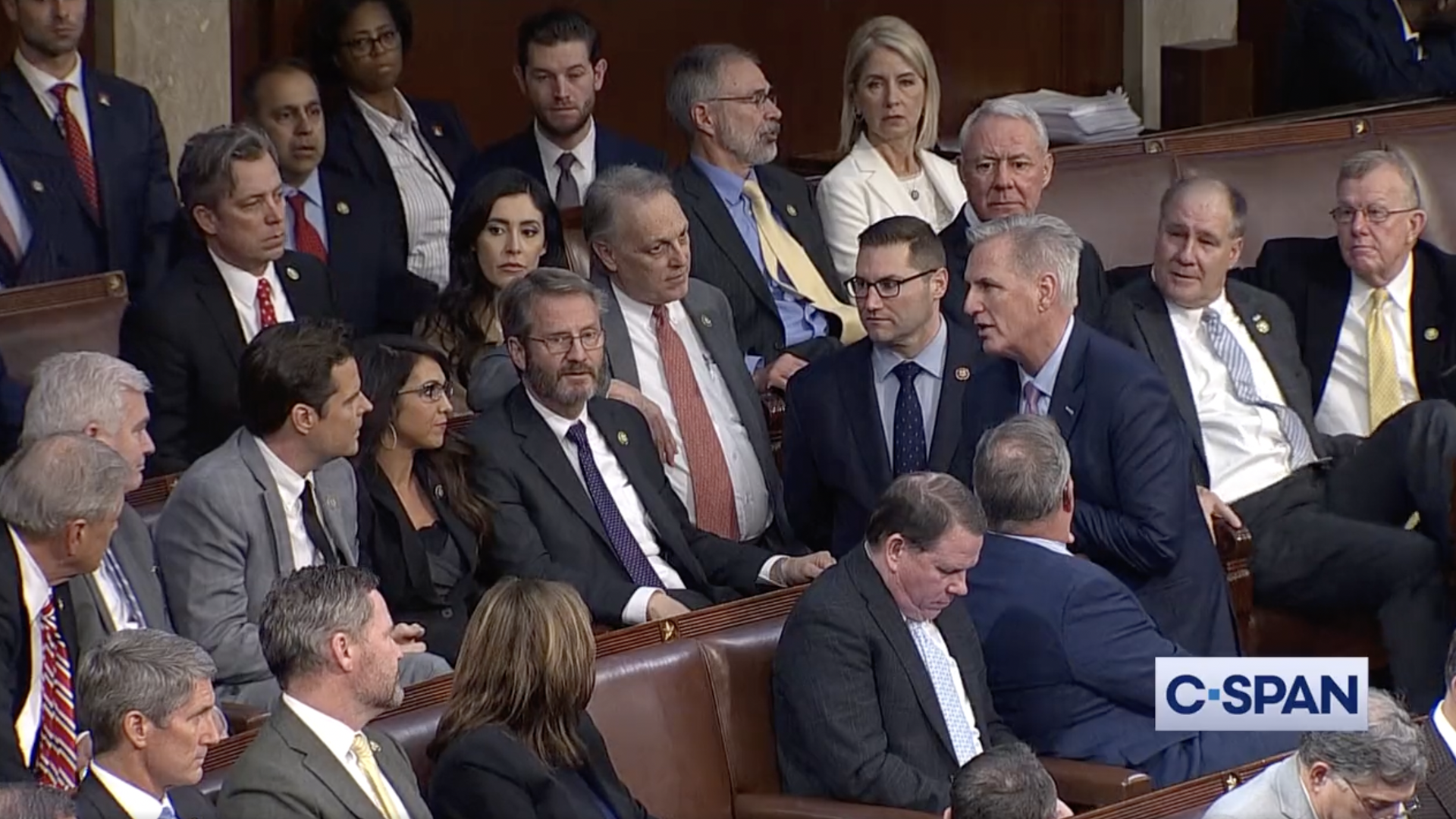 Screenshot from C-SPAN's live coverage of Rep. Kevin McCarthy confronting Rep. Matt Gaetz in the House Chamber during his dayslong House speaker vote.