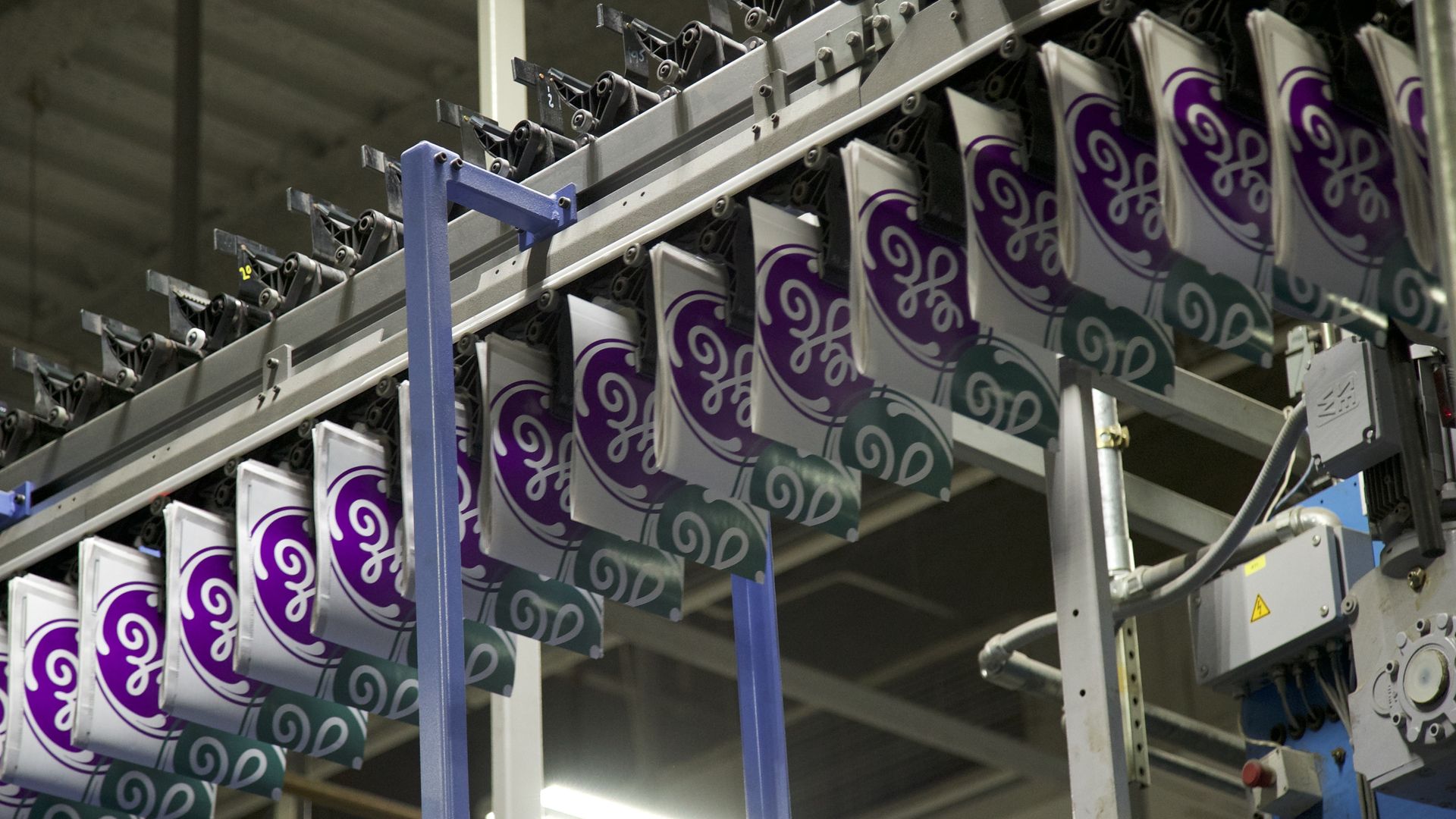 GE-wrapped New York Times papers being printed at The Times' presses last night in Queens, N.Y. Photo: GE