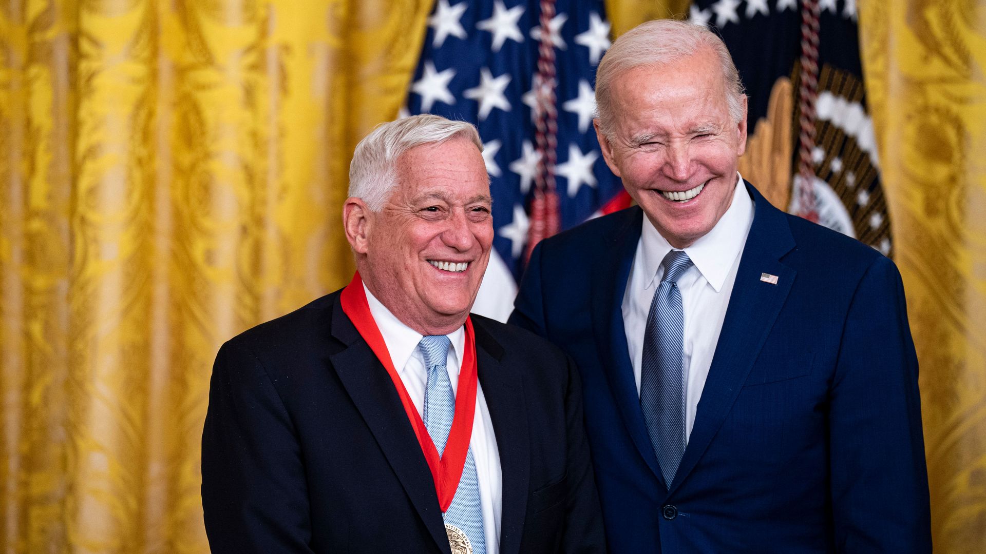 Walter Isaacson receives the National Humanities Medal from President Joe Biden in March. Photo: Al Drago/Bloomberg via Getty Images
