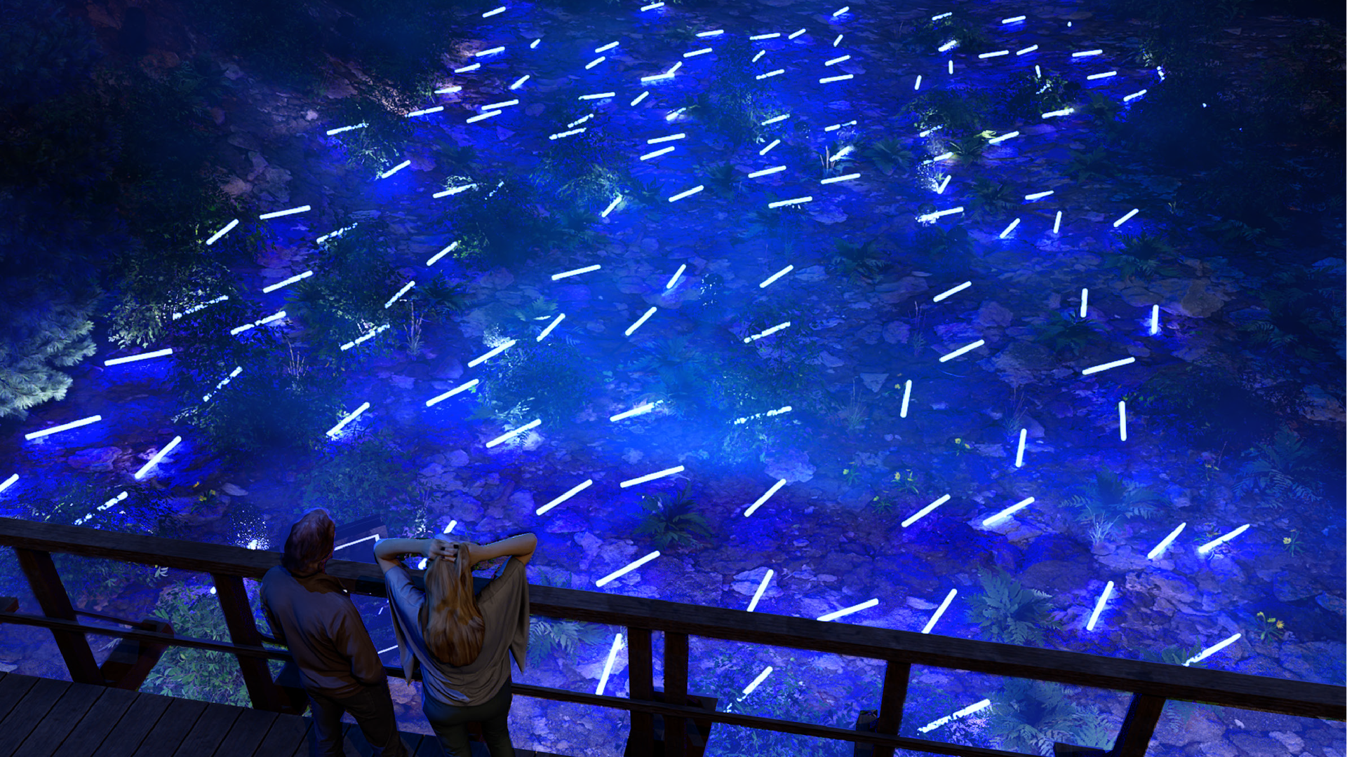 "Listening Forest": This nighttime outdoor exhibit by Rafael Lozano-Hemmer in the forest outside Crystal Bridges incorporates light, sound and projections.