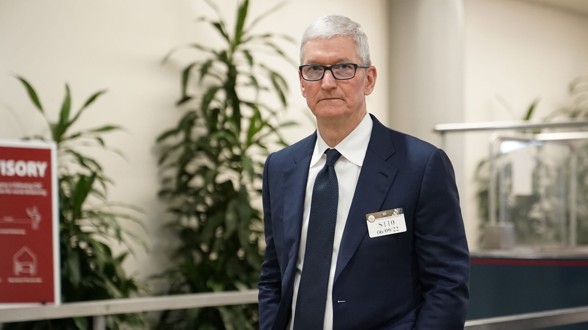 Apple CEO Tim Cook in D.C. today, where he was meeting with senators on various issues, including competition bills. Photo: Patrick Semansky/AP