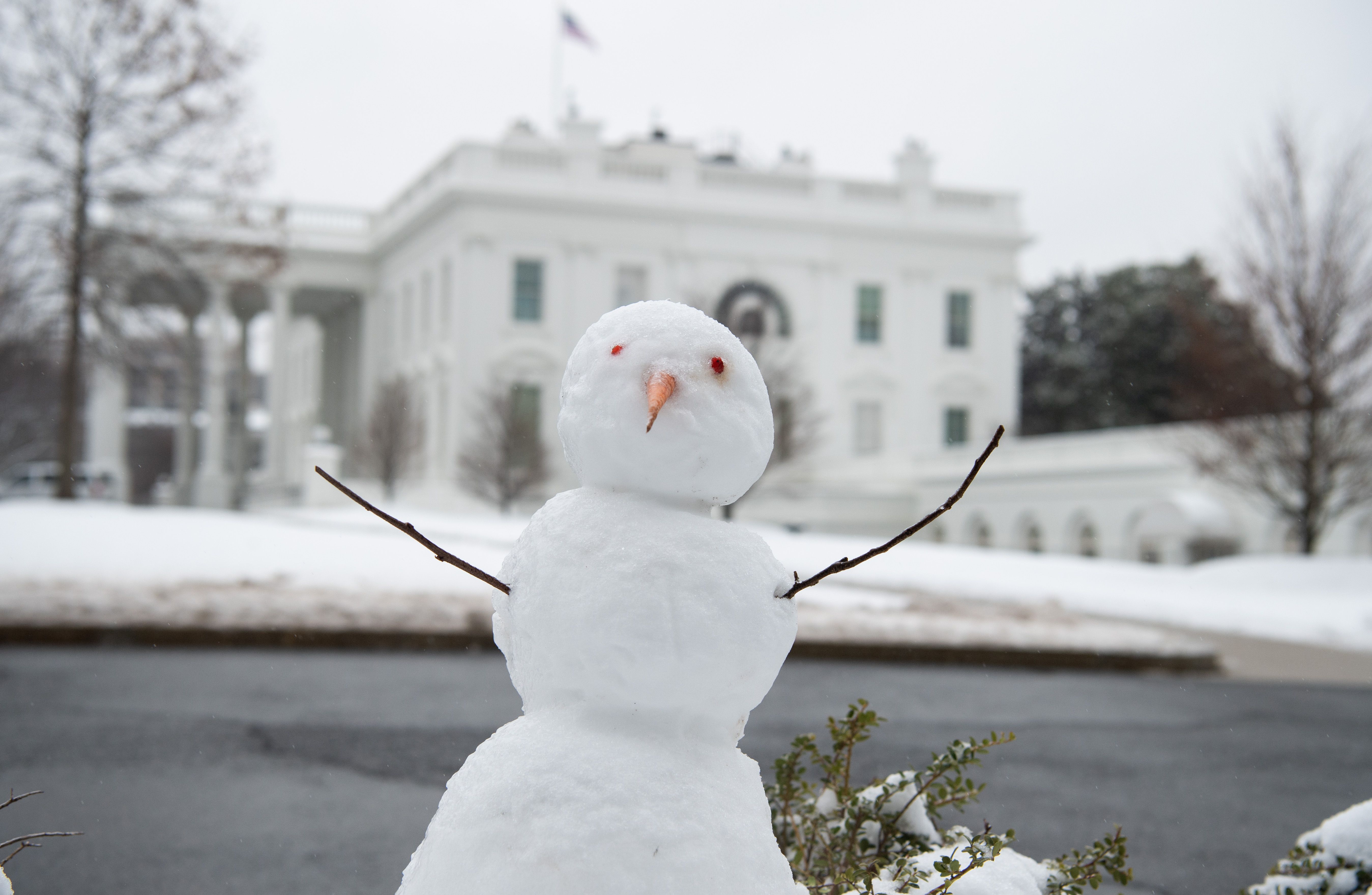 A snowman on the North Lawn of the White House.