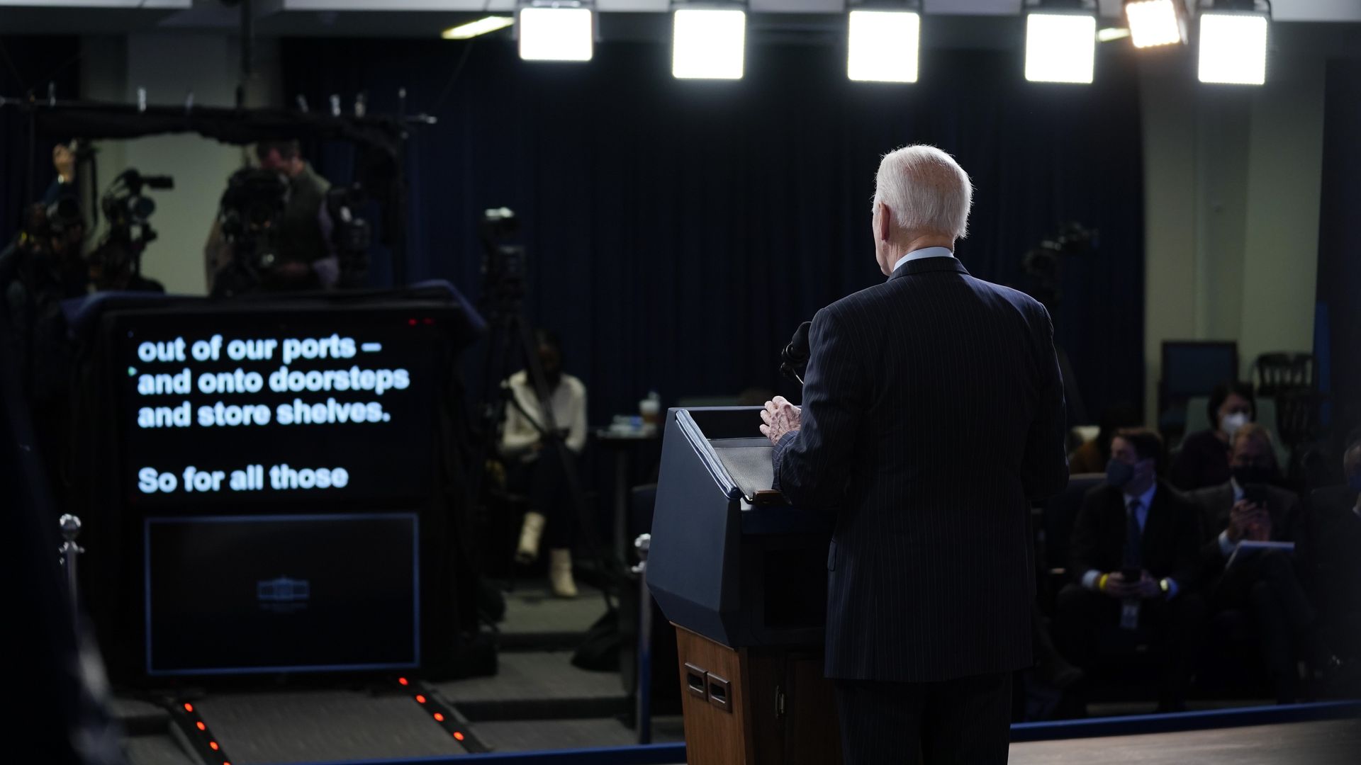 President Biden speaks on the economy in the South Court Auditorium at the White House today. Photo/Evan Vucci/AP