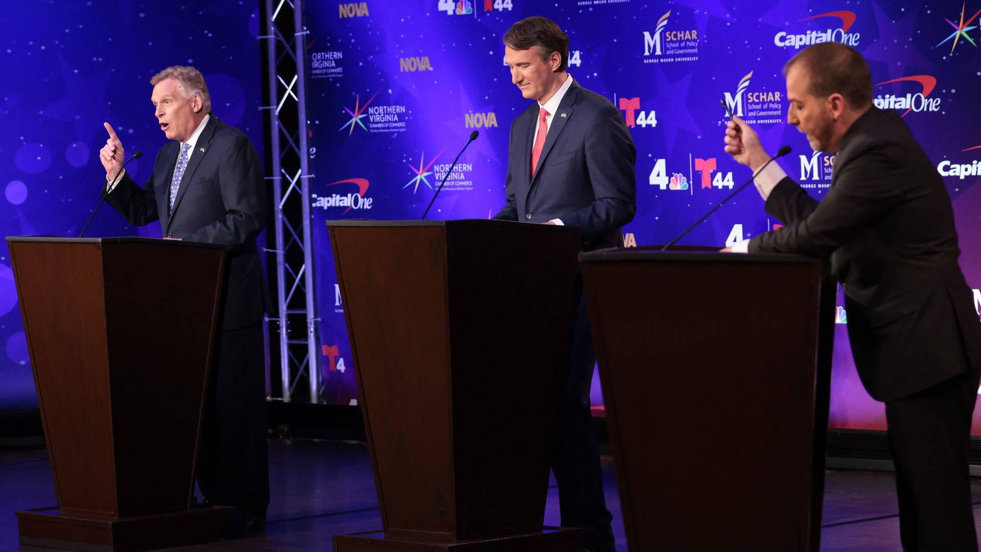 NBC's Chuck Todd moderates a debate between Terry McAuliffe and Glenn Youngkin in Alexandria on Sept. 28. Photo: Win McNamee/Getty Images