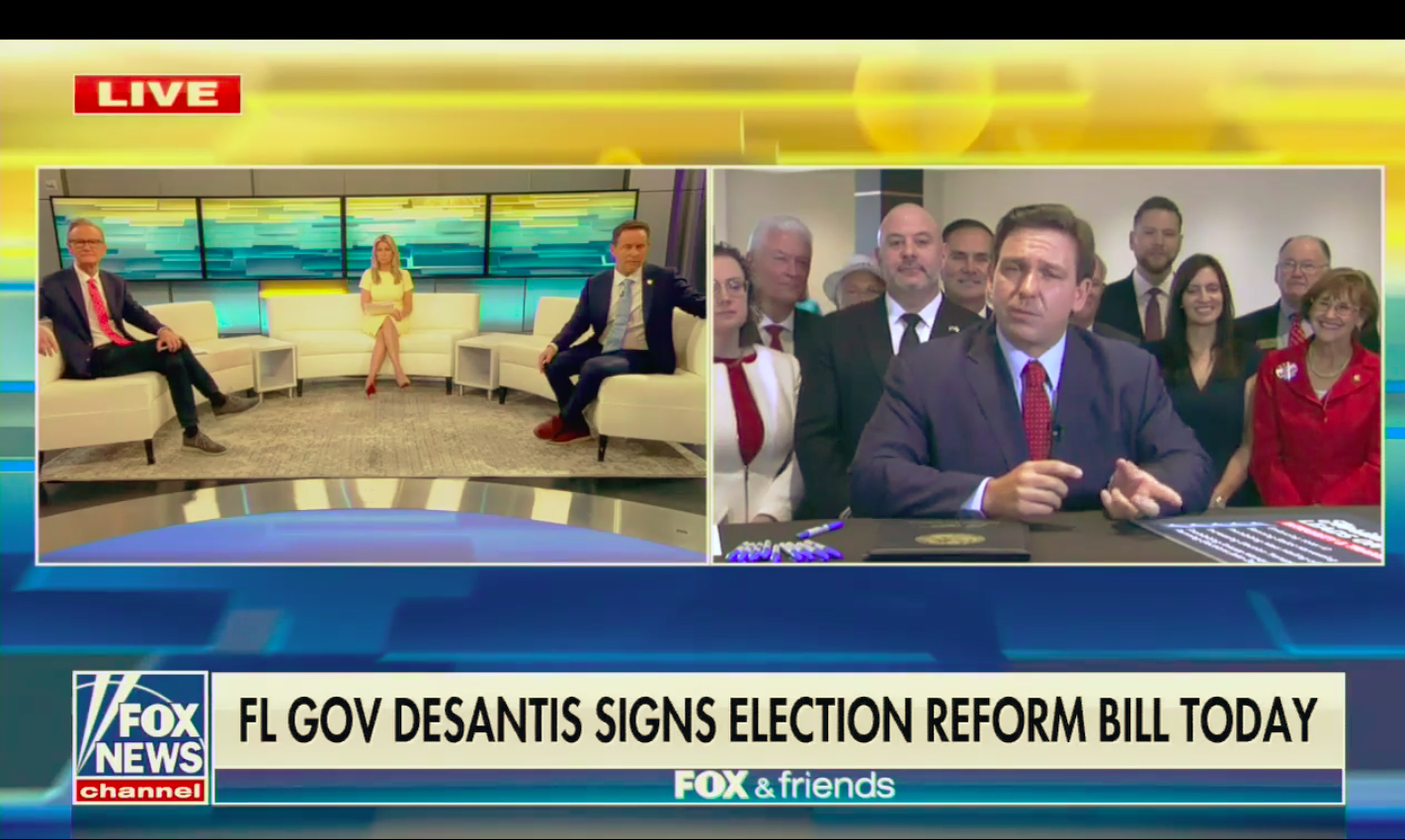 - Florida Gov. Ron DeSantis signed sweeping new restrictions on voting into law at an event that banned all local media outlets except Fox News. Go deeper.