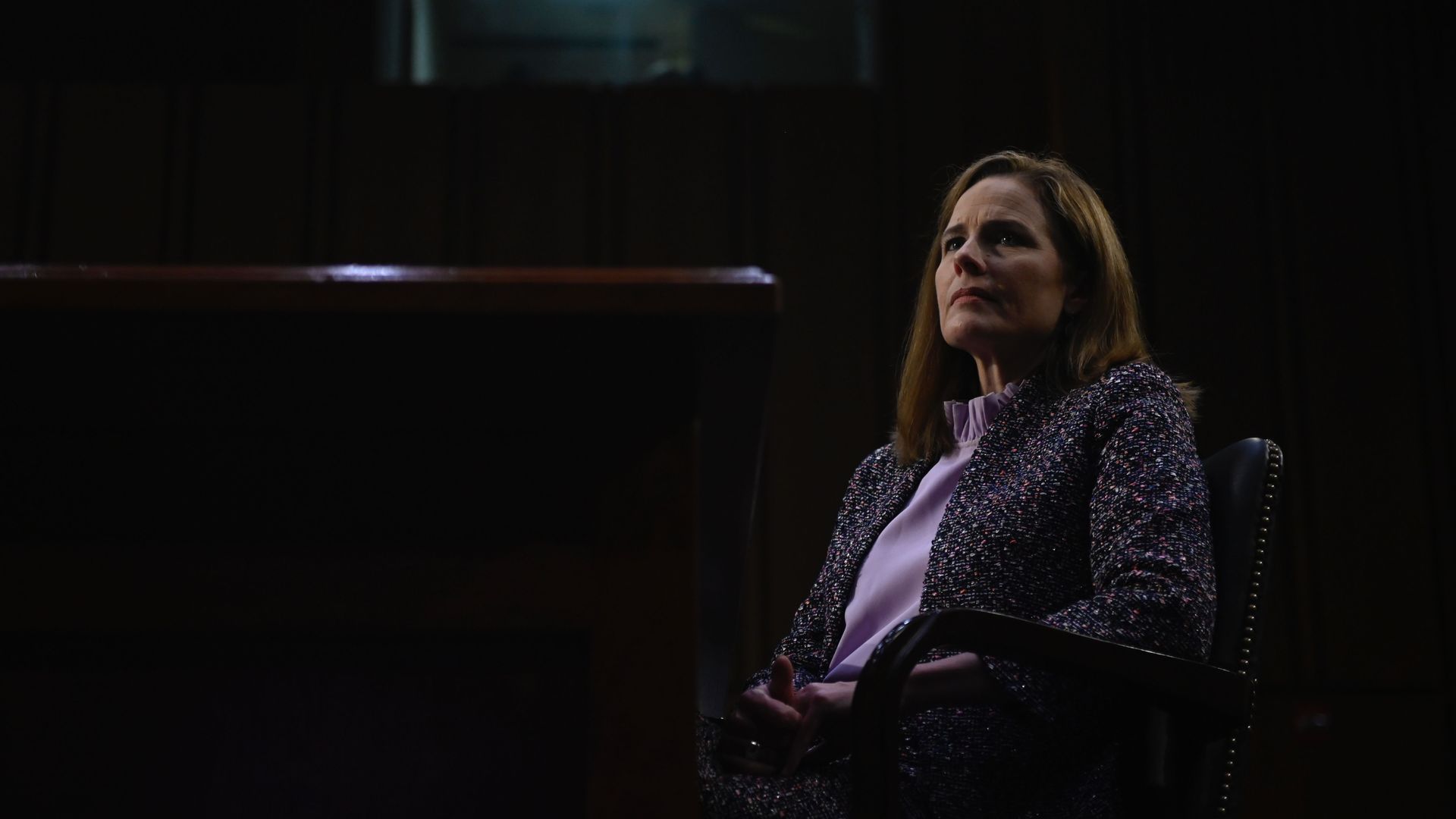 Amy Coney Barrett during her 2020 confirmation hearings. Photo: Andrew Caballero-Reynolds via Getty Images