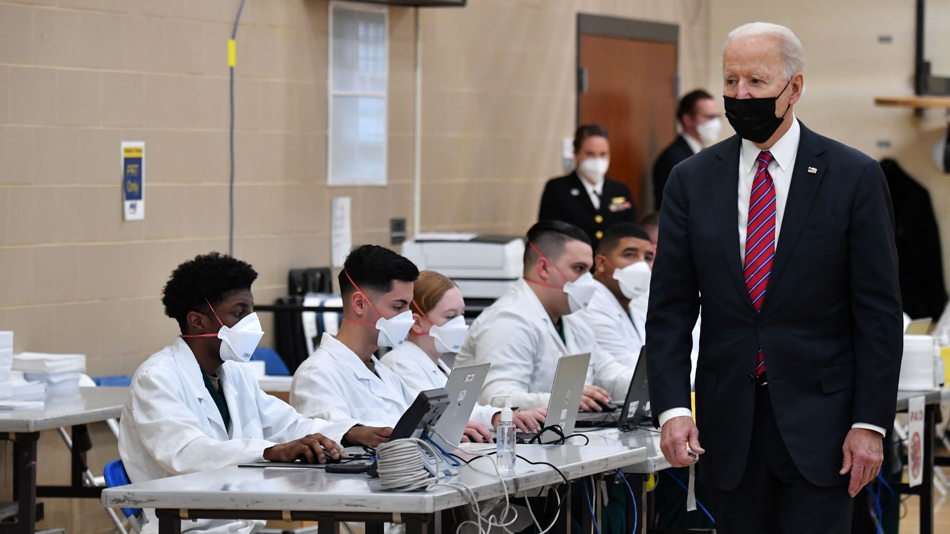 President Biden visits a coronavirus vaccination site today at Walter Reed. Photo: Nicholas Kamm/AFP via Getty Images