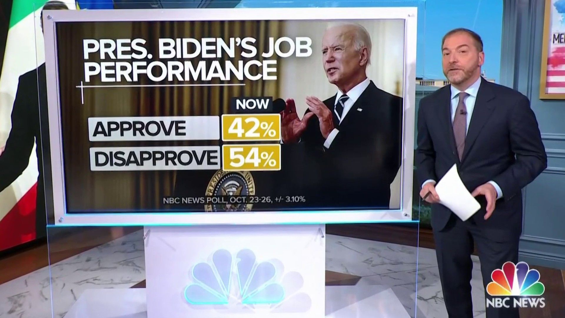 The latest: An NBC News poll out this morning finds 54% of Americans disapprove of Biden's performance — on the brink of midterms, and as he's trying to close the deal on a historic expansion of government.