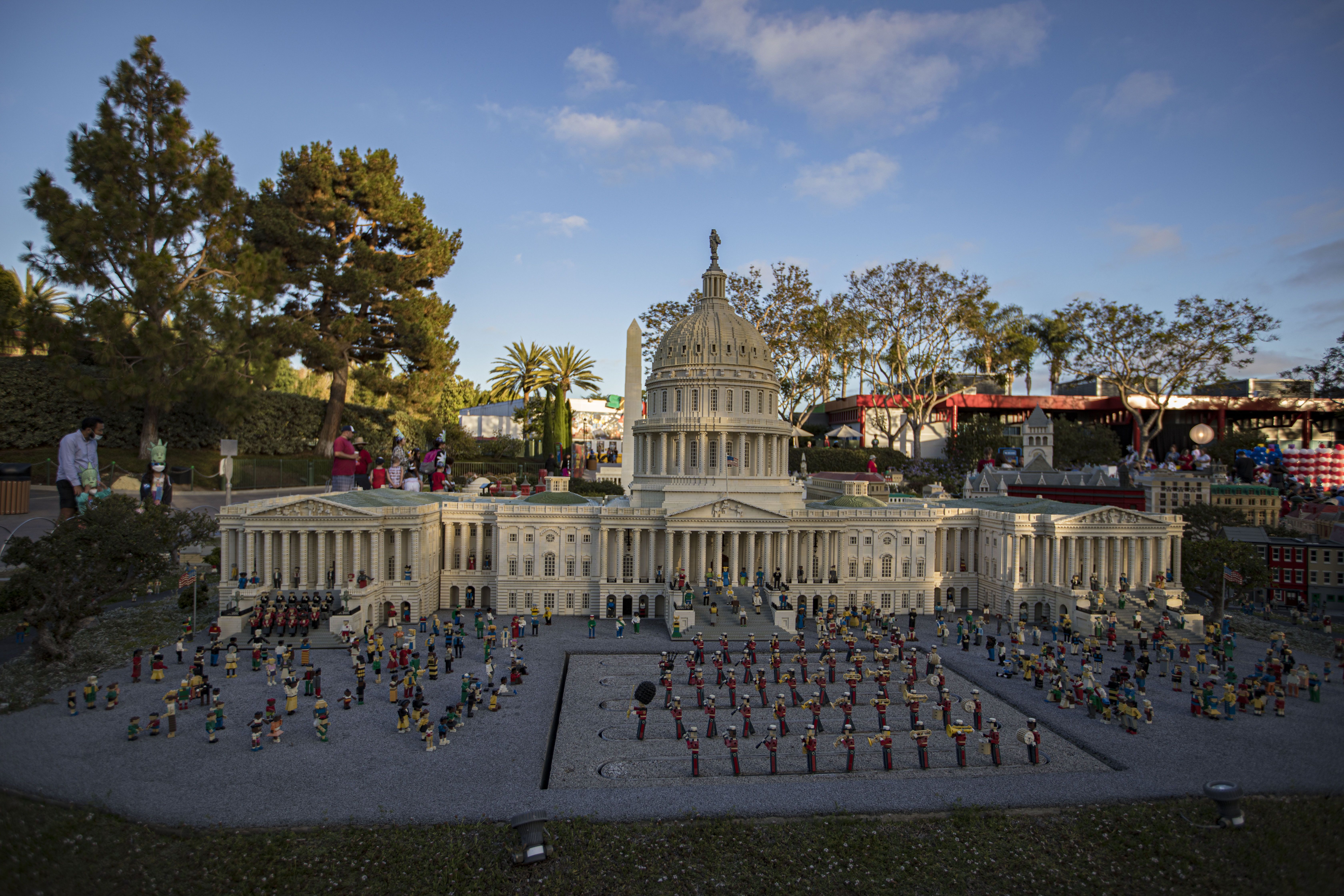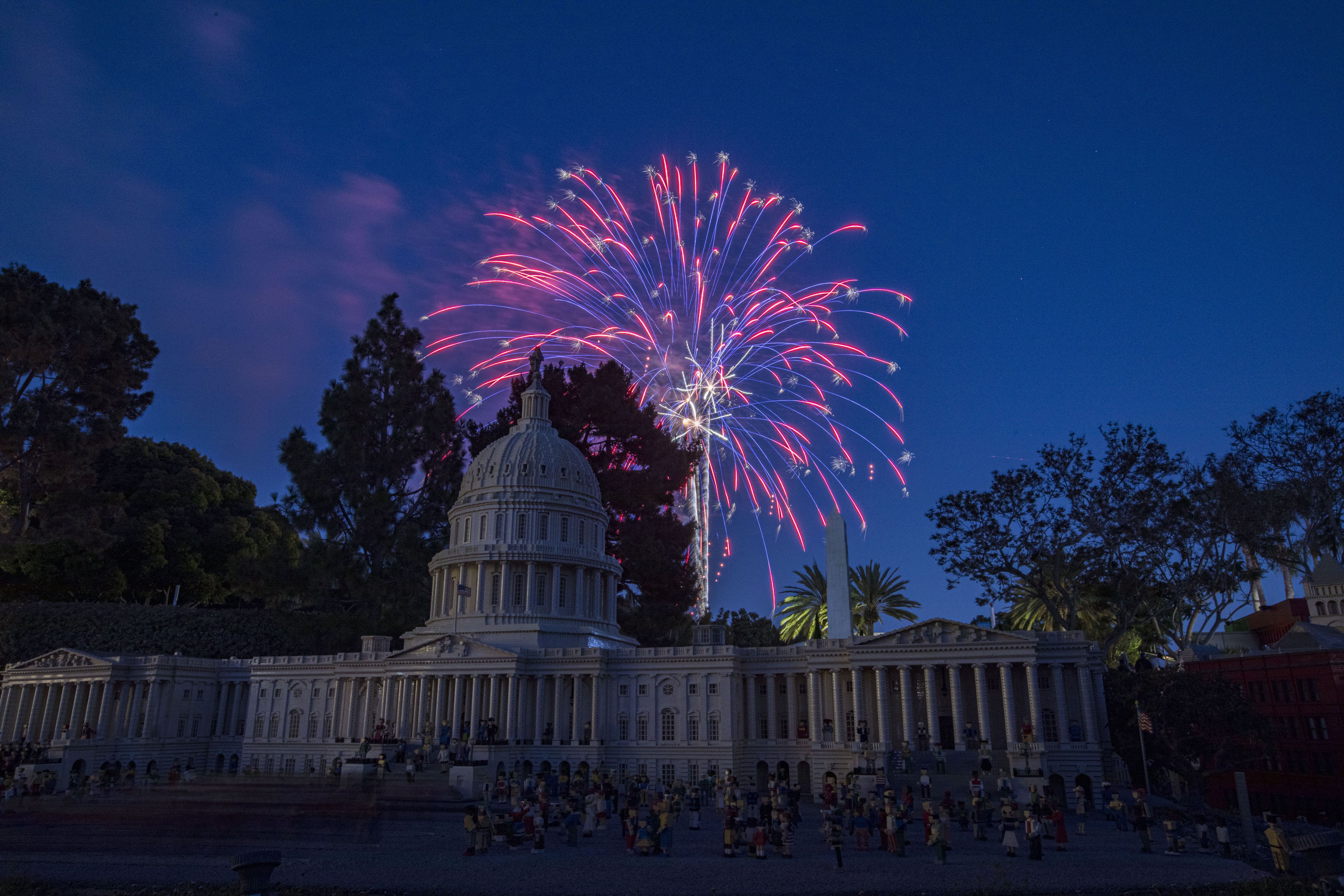 These fireworks are exploding over a Lego version of the Capitol yesterday at Legoland in Carlsbad, Calif.