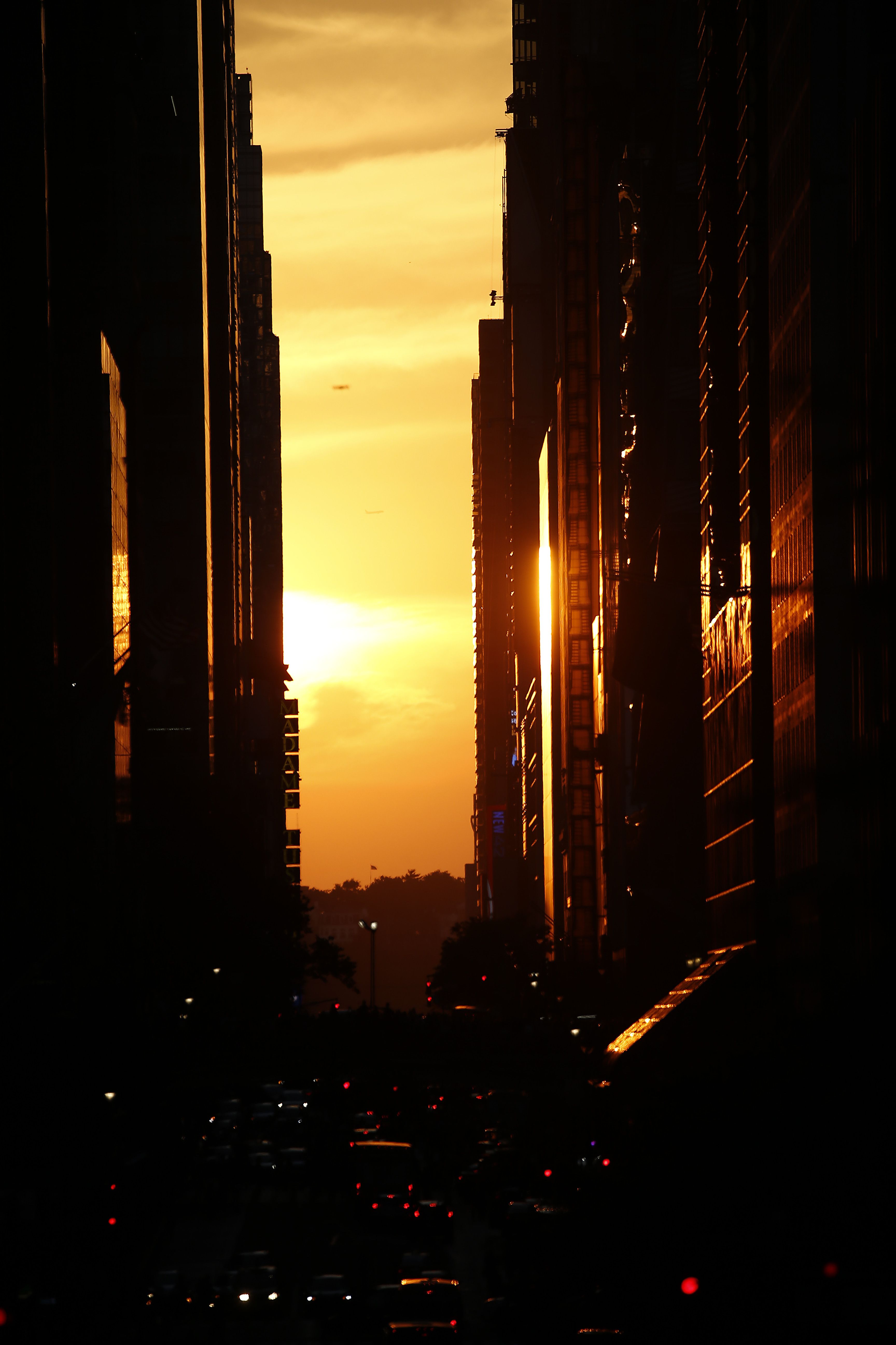 - That's when the setting sun aligns with the Manhattan street grid, bathing the urban canyons in a rosy glow.