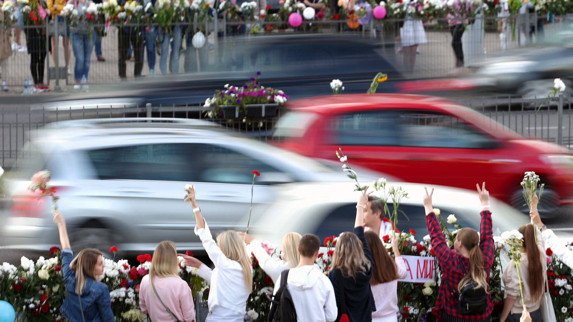 - Many were dressed in white and carried flowers and portraits of loved ones who have been detained during protests that began shortly after Sunday’s vote, which they said was rigged.