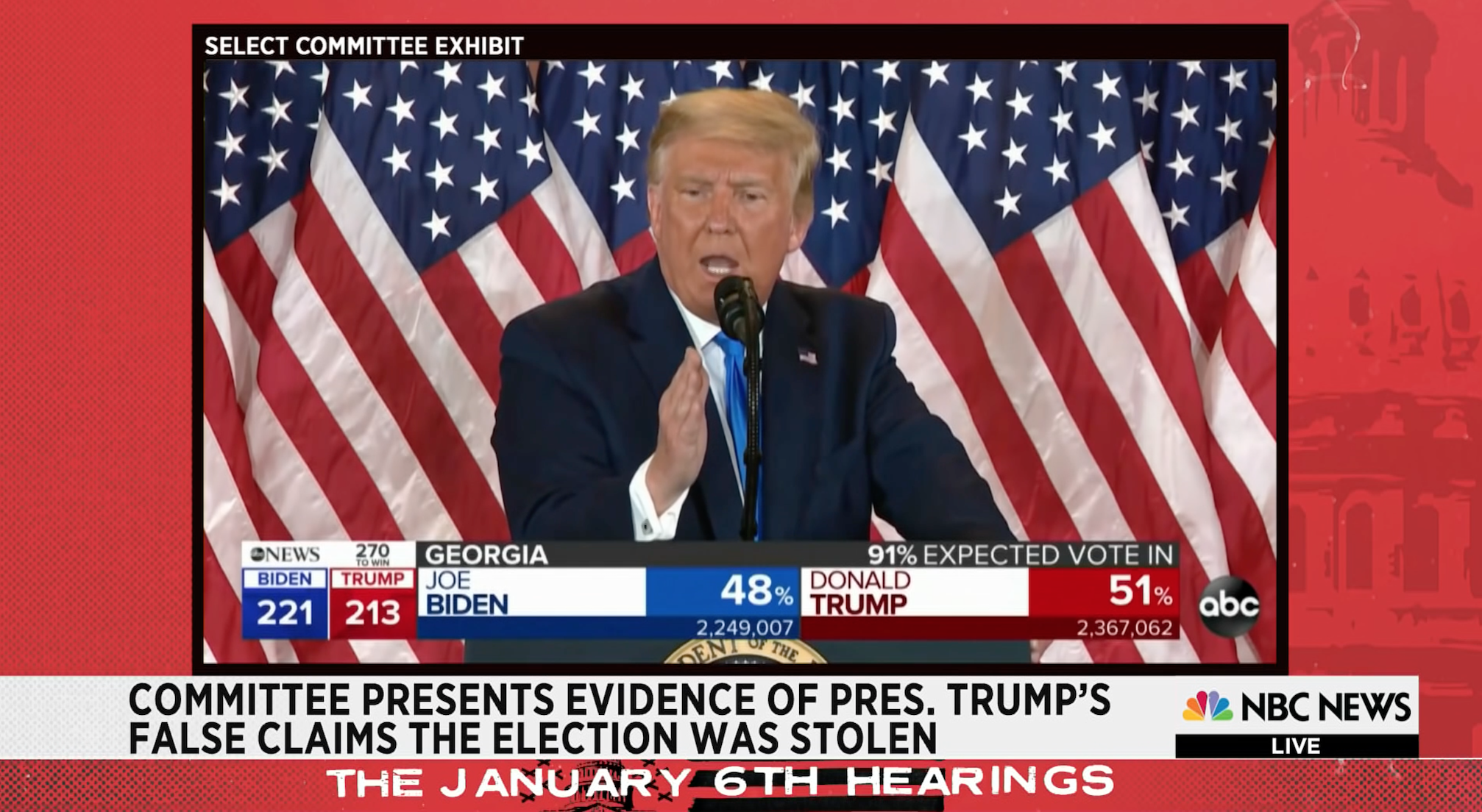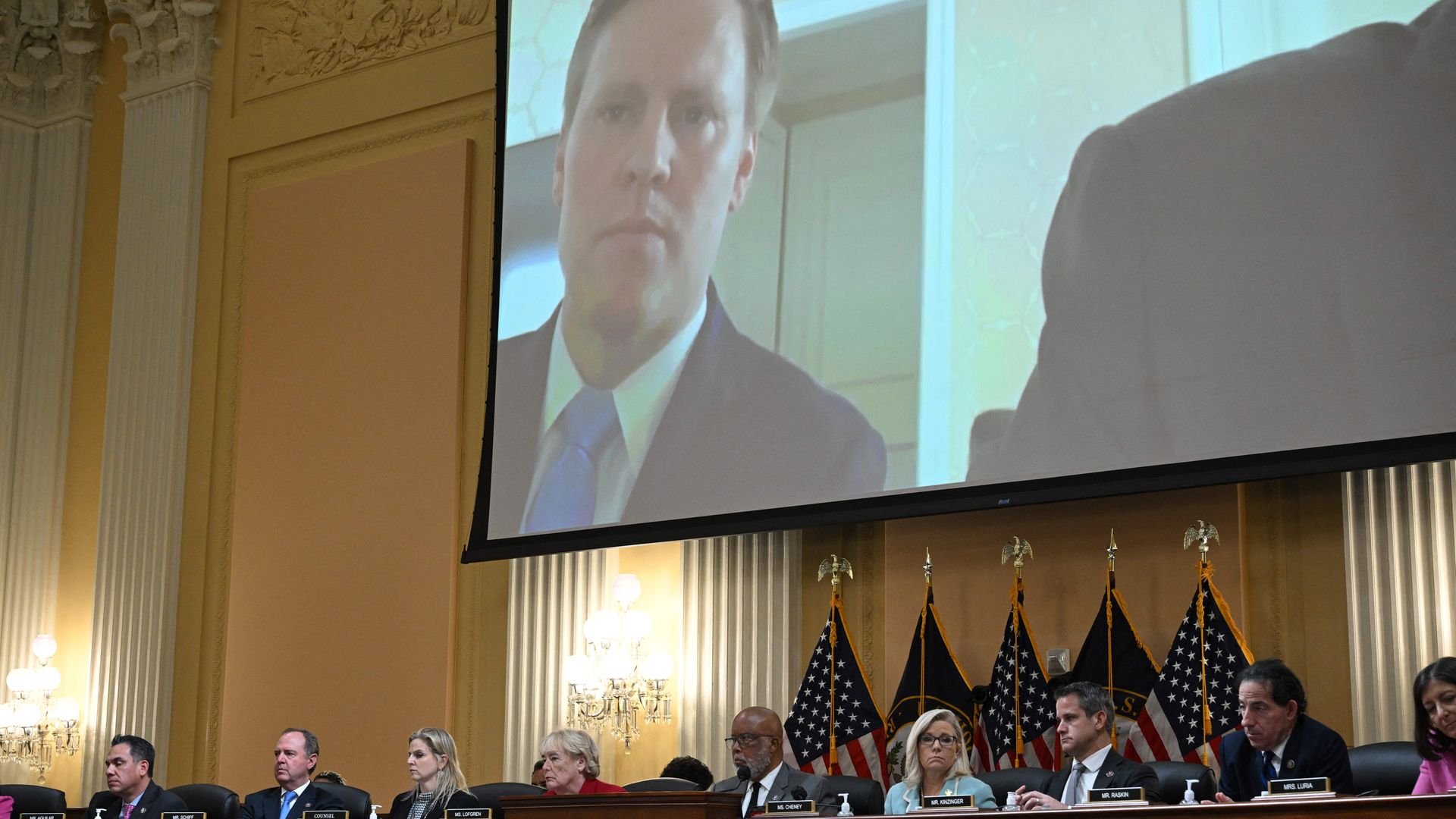 A clip from a taped deposition by former Trump campaign manager Bill Stepien is shown during today's hearing. Photo: Mandel Ngan, AFP via Getty Images