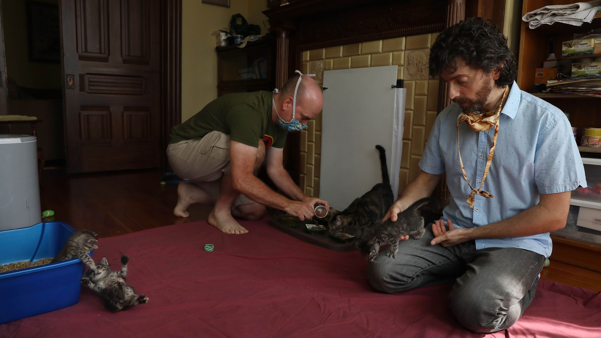 Daniel Schweitzer and spouse Jeff Patterson care for their five foster kittens and cat in San Francisco, Calif. Photo: Lea Suzuki/The San Francisco Chronicle via Getty Images