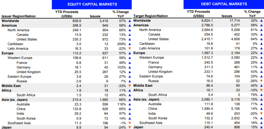 - Go deeper, per Reuters: "Companies raised the most funds in global equity and debt markets for the month of August in a decade as homebound bankers spend their summer fixing deals off the back of trillions of dollars of stimulus worldwide to fight the coronavirus pandemic."