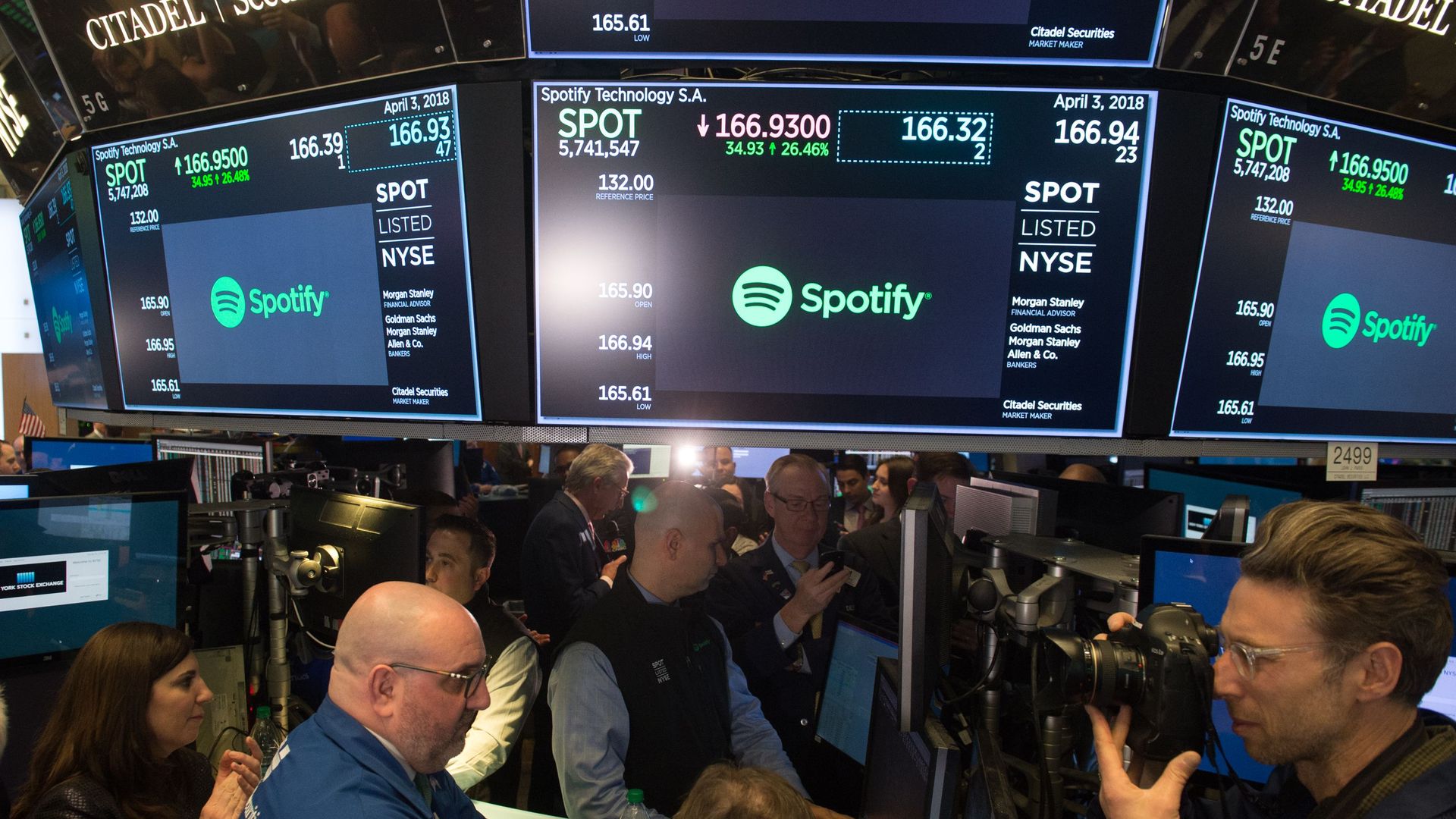 - For context, Spotify's listing reference point was $132 per share. It hit a first-day high of $165.90 before settling down to close at $149.01, and closed trading yesterday at $130.79 per share.