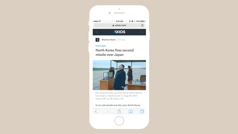 Android: When you're at Axios.com on the Google Chrome browser, click the menu bar on the top right and select "Add to Home Screen"iPhone: When you're at Axios.com on the Safari browser, click on the 'share' button at the bottom center of the screen and then click "Add to Home Scree