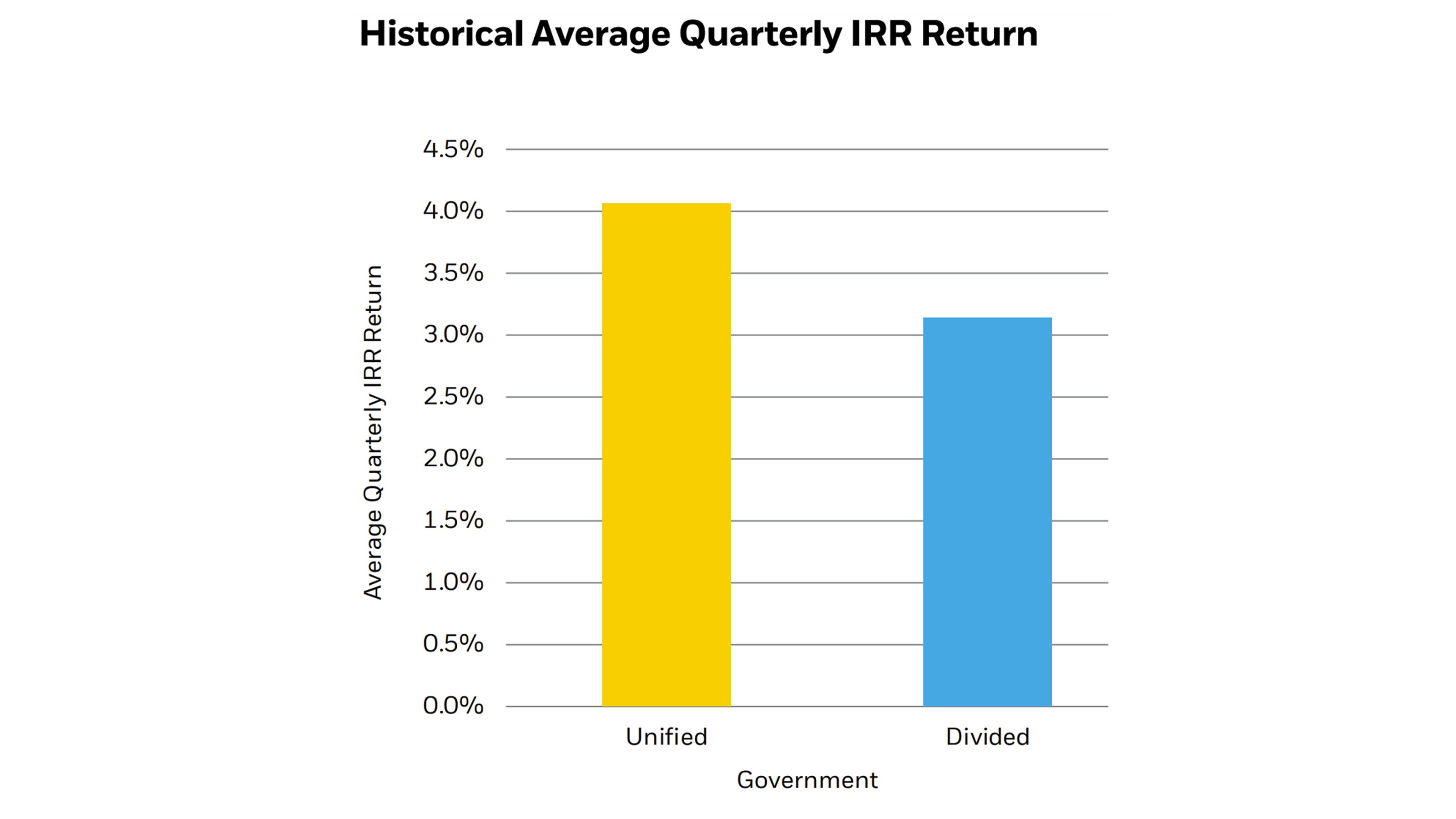 - Average quarterly IRRs were superior with Republican presidents.