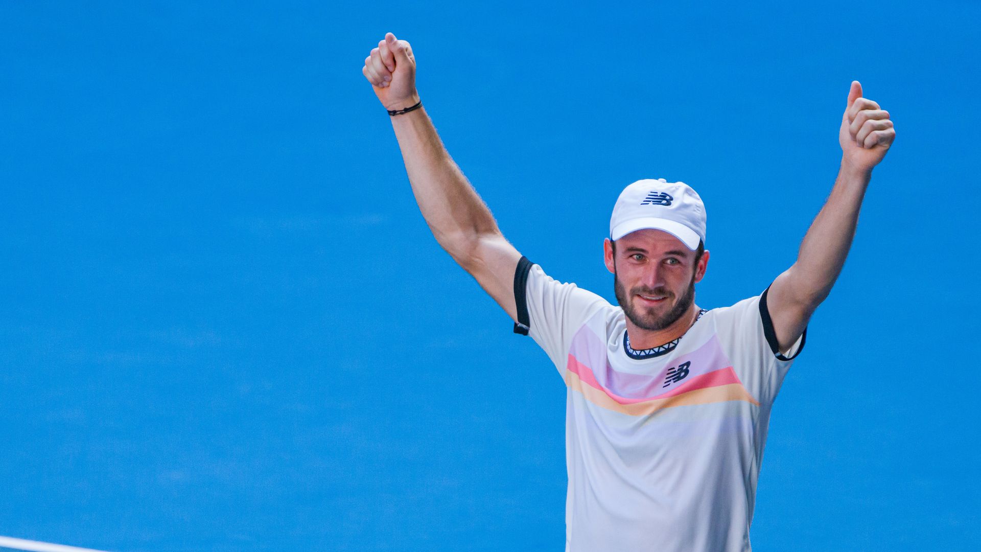 Tommy Paul celebrates victory in the quarterfinal singles match in the 2023 Australian Open. Photo: Andy Cheung/Getty Images
