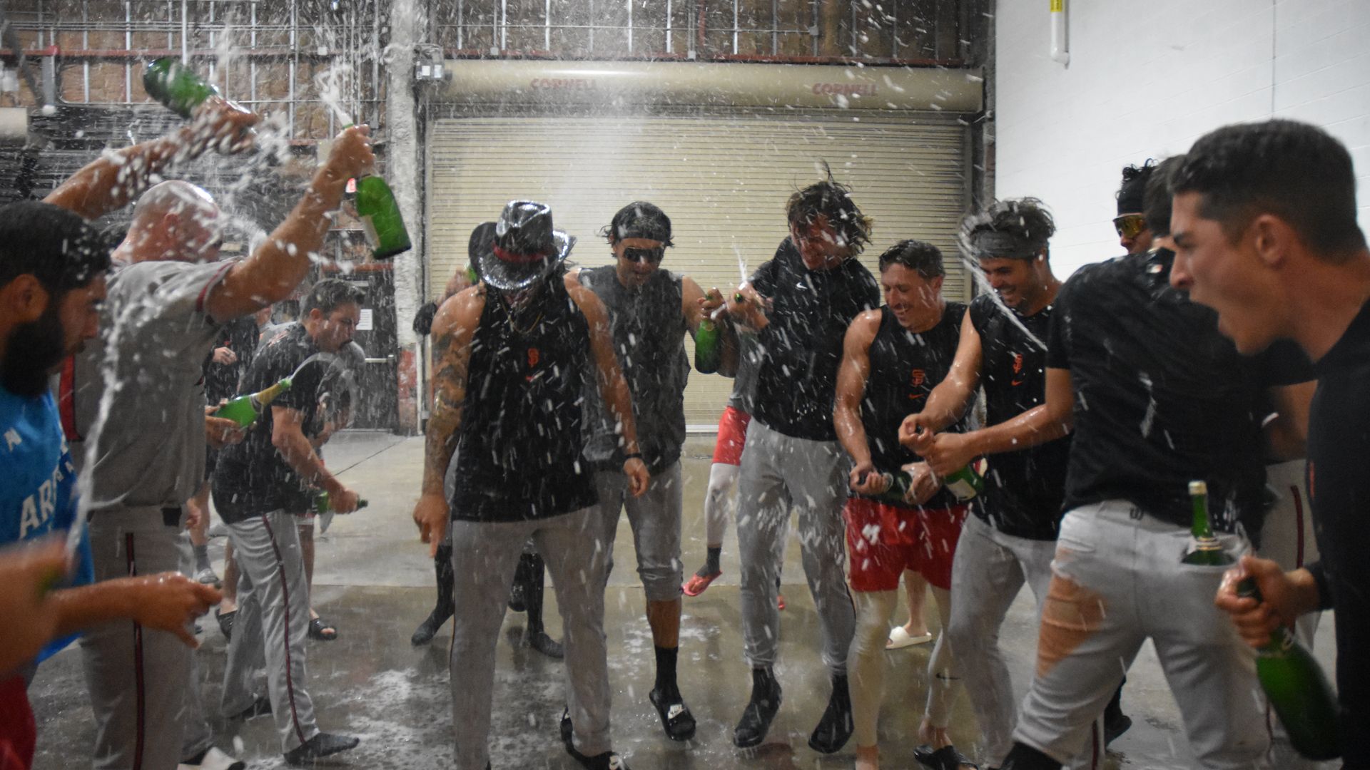 The team celebrating when they learned last week they'd be in the playoffs. Image: Courtesy of Flying Squirrels