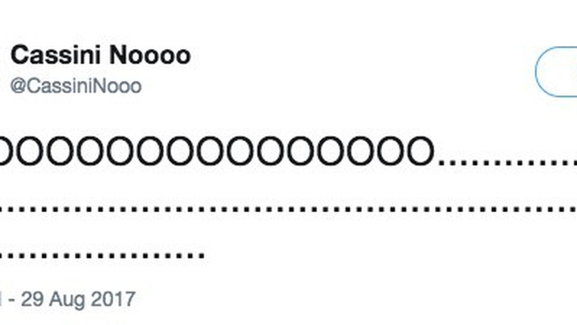 When the Cassini spacecraft intentionally hurls itself into Saturn on Sept. 15, it will have spent one month shy of 20 years in space. The probe recently discovered hydrogen plumes that could be an energy source for microbes and has given us stunning images of Saturn's moons and iconic rings. Its forthcoming demise has inspired a melancholic Twitter bot, naturally.