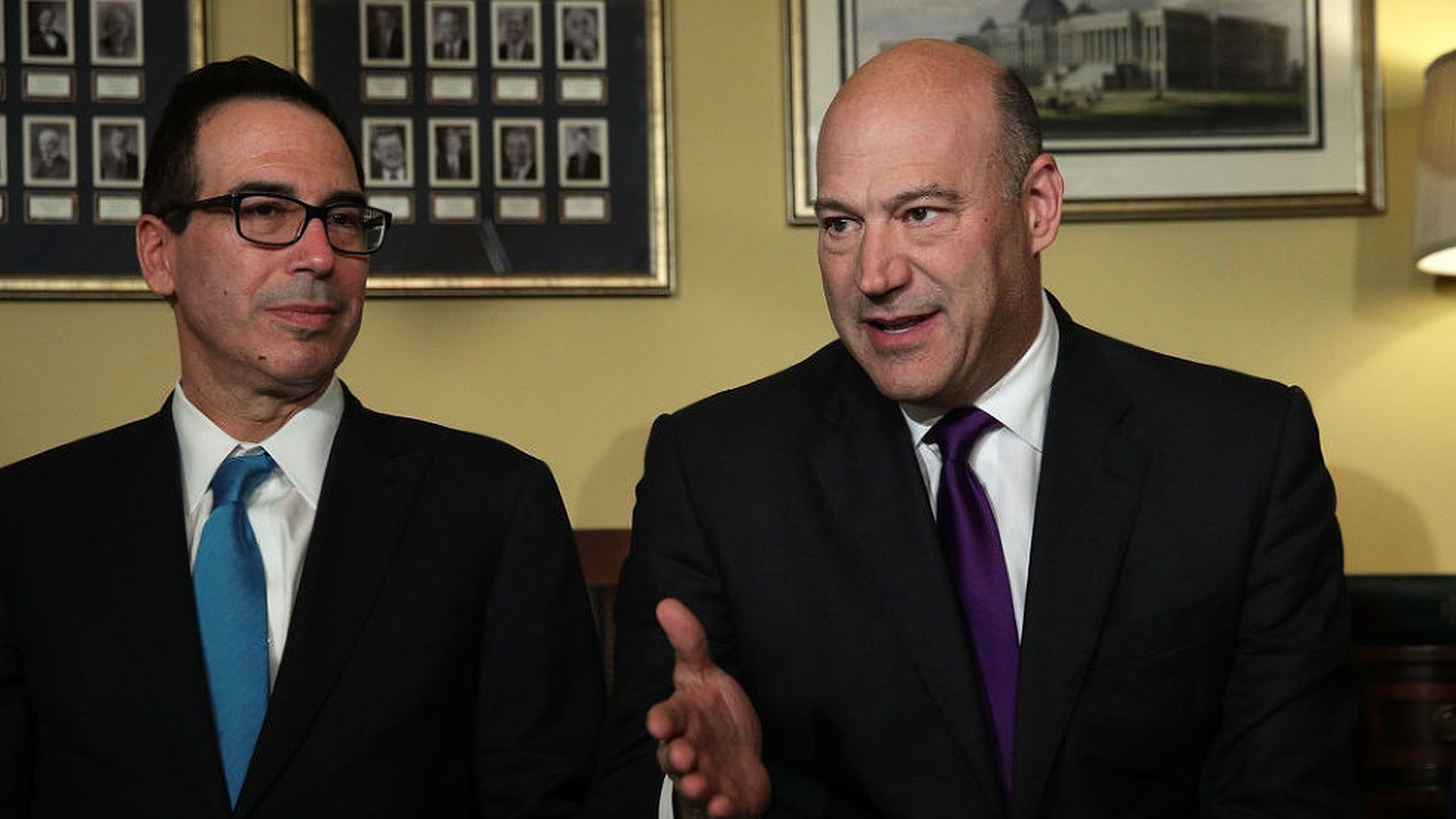 Gary Cohn and Steven Mnuchin successfully kept President Trump from making any disruptive trade actions during the tax reform fight. Now that tax reform is done — and Trump remains hell-bent on tariffs — they're making new arguments to try to mellow his hardwired trade-warrior impulses.