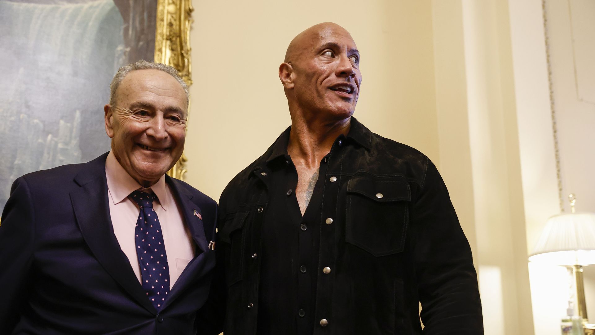 Senate Majority Leader Chuck Schumer (D-N.Y.) poses with "The Rock." Photo: Anna Moneymaker/Getty Images