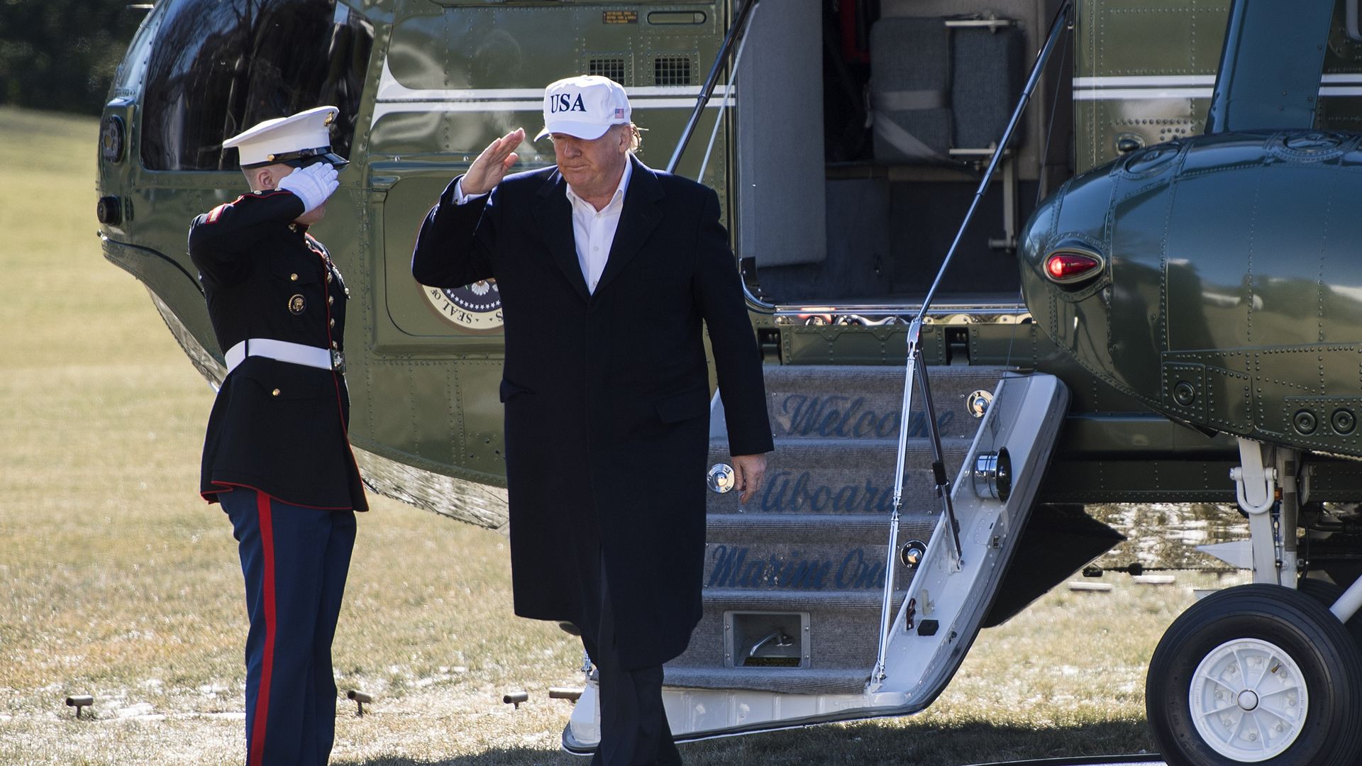 Trump steps off Marine One after returning from Camp David. Photo: Kevin Dietsch-Pool/Getty Images