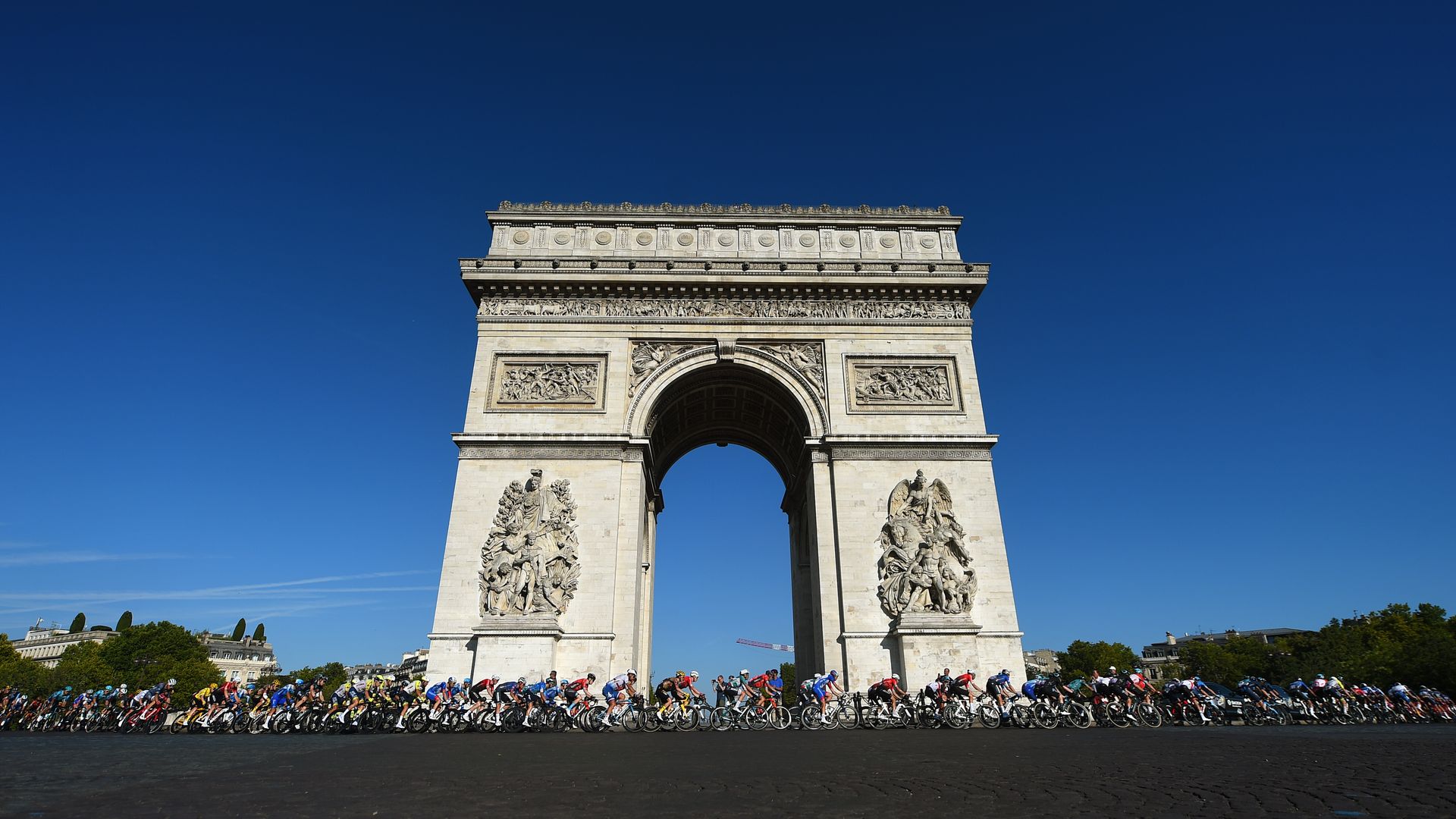 The peloton passes the Arc de Triomphe in the final stage of last year's race. Photo: Dario Belingheri/Getty Images